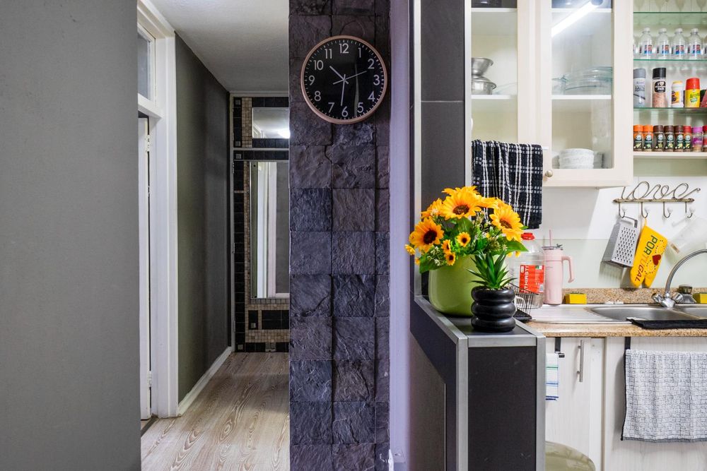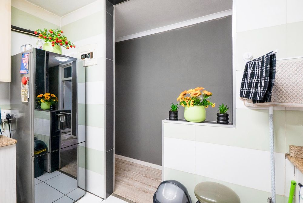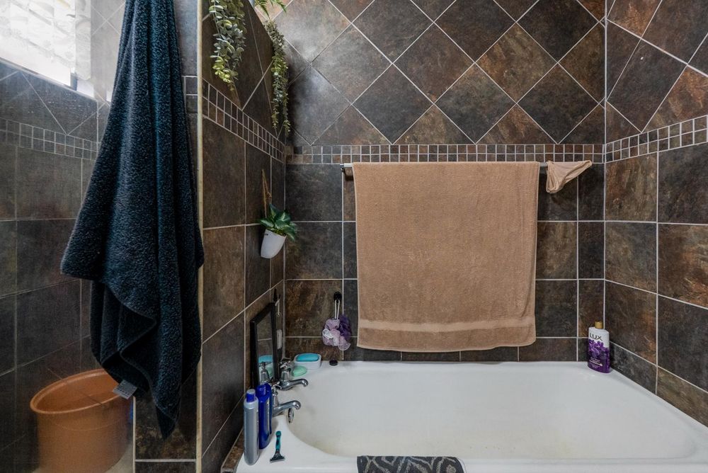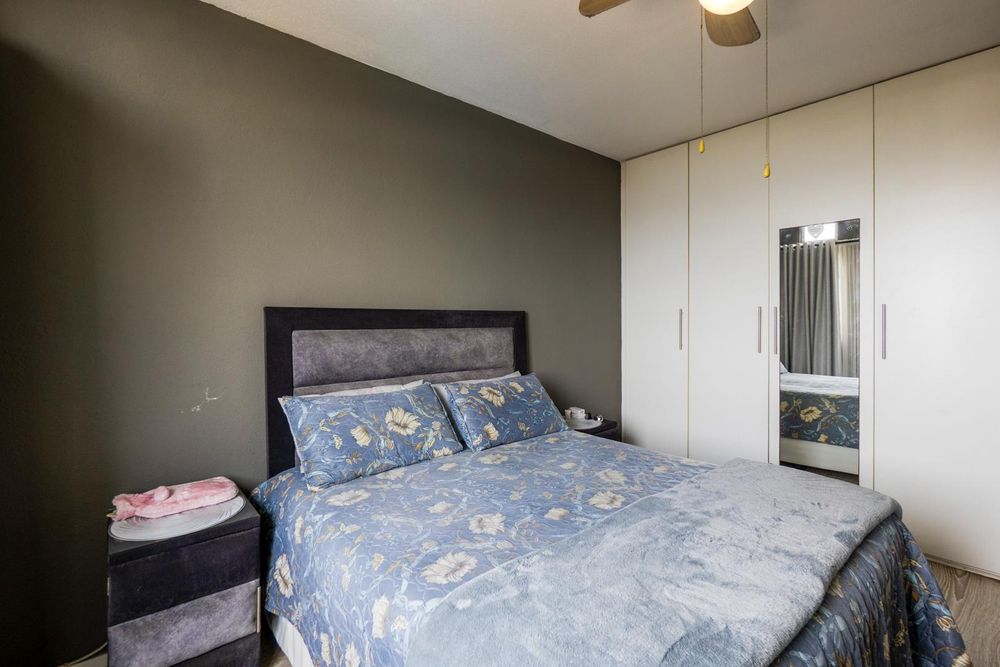 The spacious kitchen is fully fitted. Down the passage is two bedroom with built in cupboards. The 3rd smaller bedroom is adjacent to the lounge.