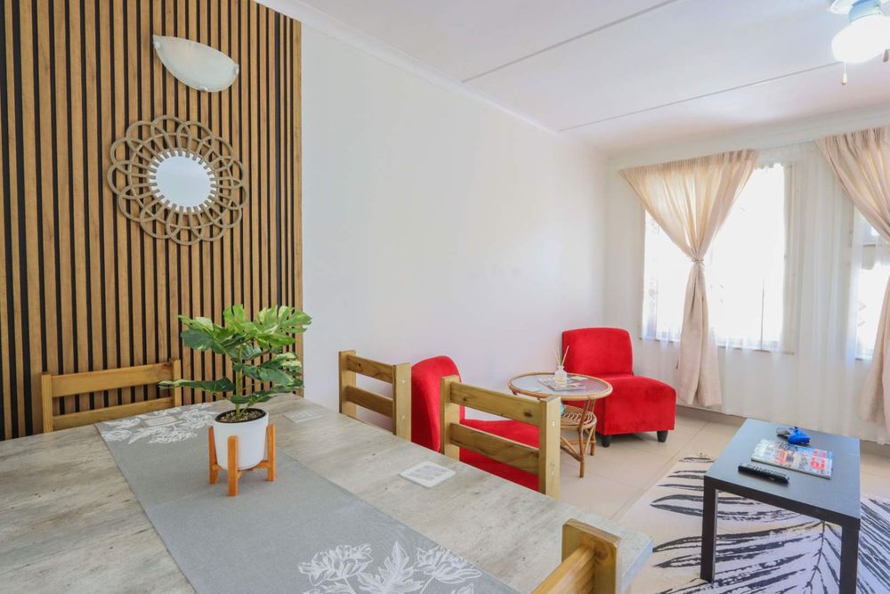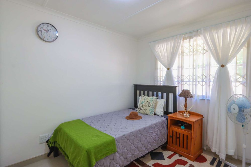 Down the passage are two spacious bedrooms with built in cupboards. The private garden allows you to keep your pets and entertain outside. The unit comes with a carport AND a garage.