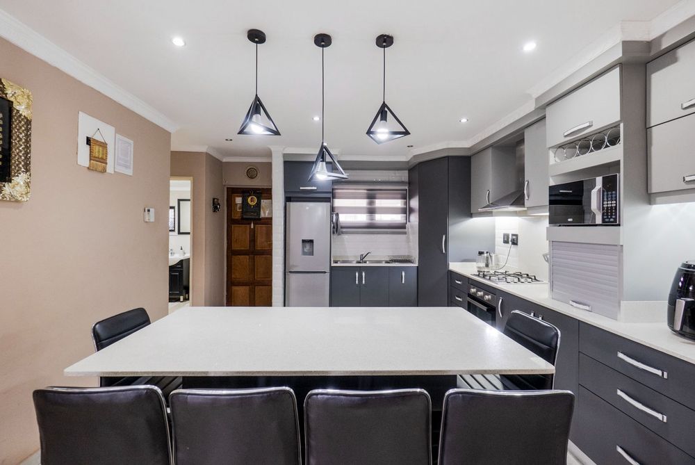 Open plan kitchen, lounge and dining room with an incredible kitchen and island. Leading out from the fully tiled home is the outdoor entertainment area with built in serving space. Perfect for being outdoor and the perfect braai setting.