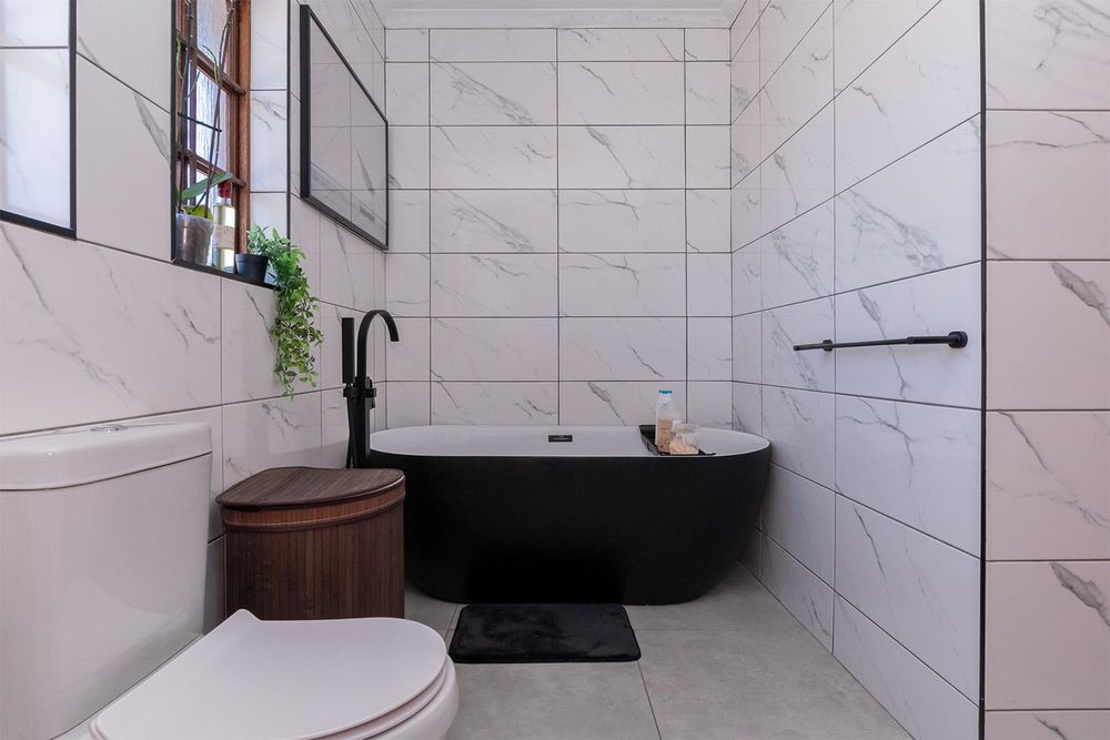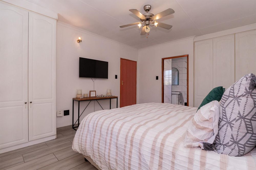 3 spacious tiled bedrooms with main bedroom having a door leading to a sun room/baby room/study, 2 tiled bathrooms with the main en-suite having a full bathroom which was recently renovated.