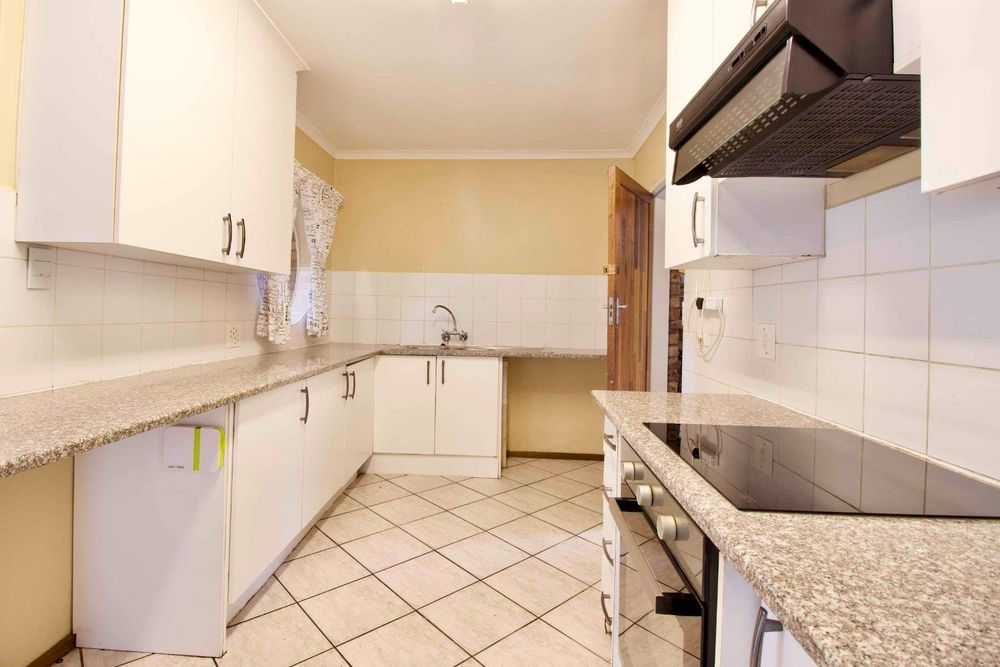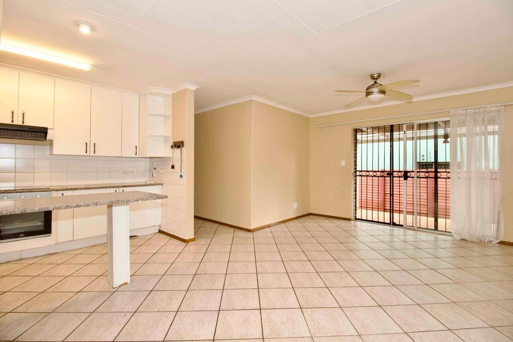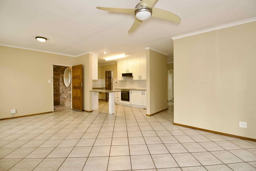 The lounge/dining room is open plan to a lovely kitchen with ample cupboard