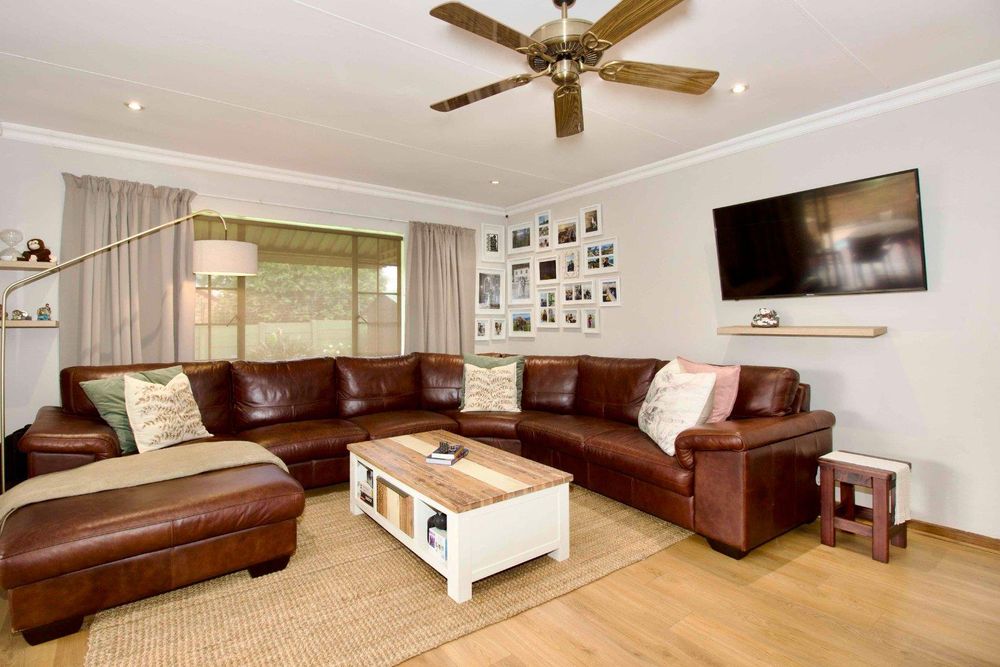 Enjoy year-round entertainment on the covered patio, complete with a built-in braai and roll-down canvas sides for weather protection. The backyard offers a large garden, Wendy house, and a sparkling swimming pool, ideal for summer relaxation.
