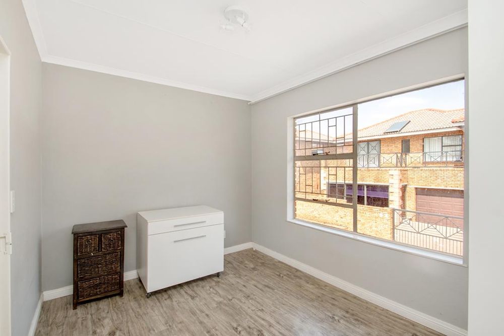 The main bedroom has balcony access and is ensuite. The second bathroom is jack and jill concept. Laminate wood flooring in bedrooms and staircase is featured.