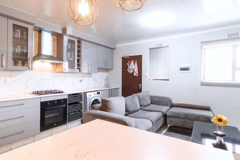 - Sleek, modern kitchen with built-in cupboards