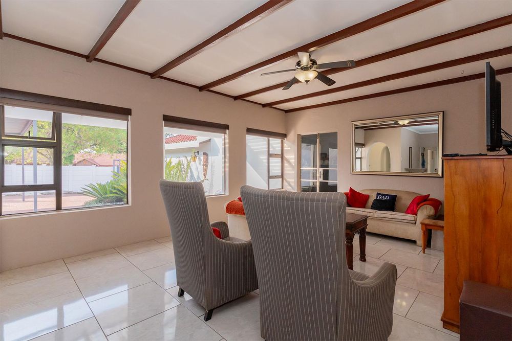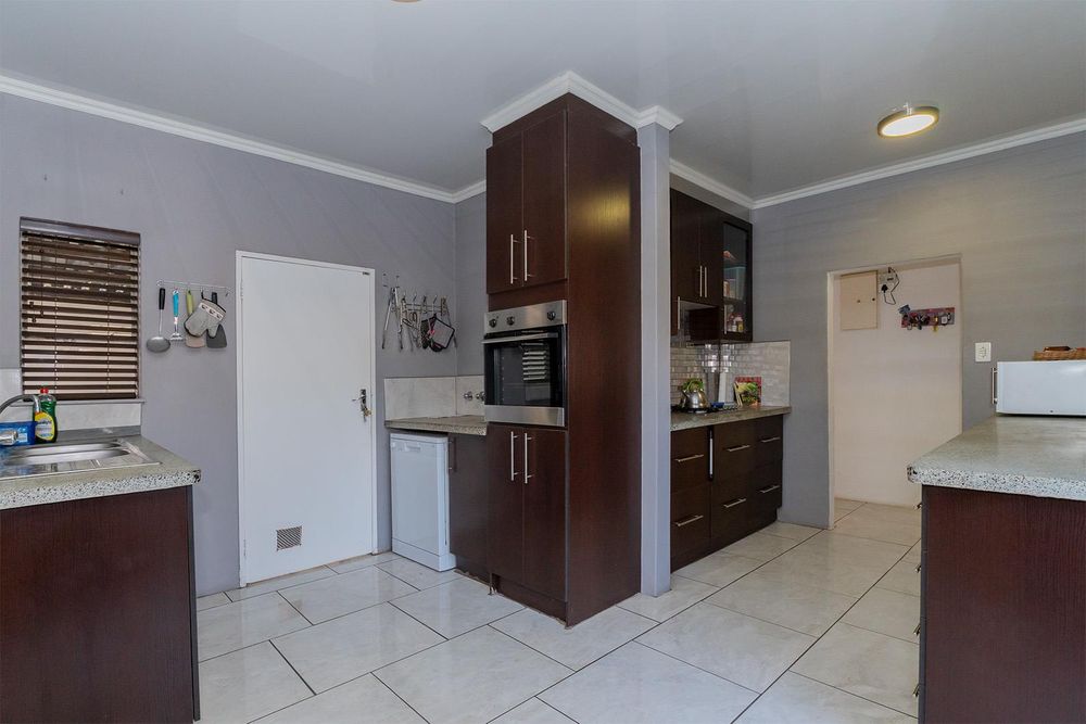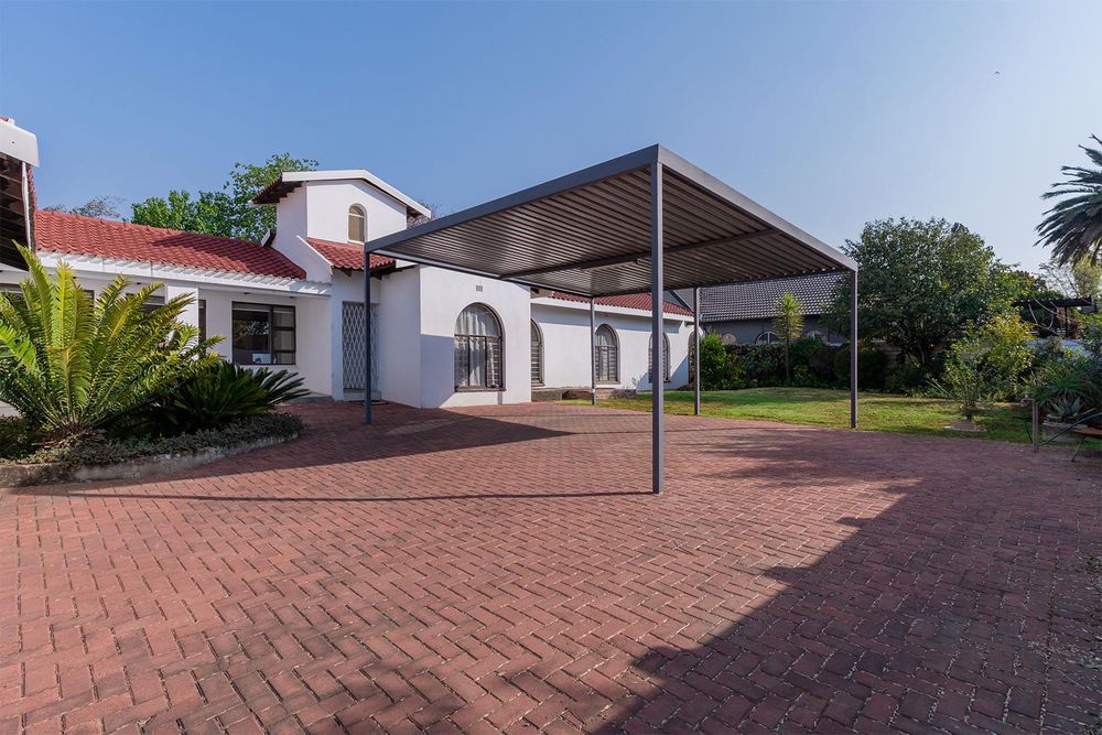 Tiled entrance hall, combined spacious tiled lounge and dining room with french doors leading to separate office area - 24sqm, exquisite kitchen with ample cupboards, gas hob, eye level oven, concrete tops, combined scullery, sliders to garden and pool, outside laundry area off kitchen with single trough, 4 good sized bedrooms with built in cupboards of which 2 is tiled and the other 2 is carpeted, spacious tiled main bedroom with walk in dresser and en-suite bathroom with bath, toilet, basin and vanity, second renovated bathroom in passage with bath, toilet, shower, basin and vanity, linen cupboard in passage, large tiled entertainment room off kitchen with built in braai, work station, guest toilet and sliders to patio overlooking the pool, double garage with direct entry into study/office area, large 24sqm storeroom/workshop off garage with door to garden, double IBR carport that can accommodate a caravan/high vehicle.