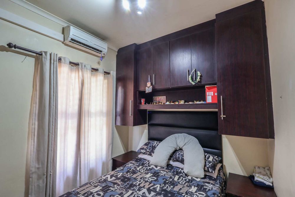 Both bedrooms include built-in cupboards and air-conditioning, with additional air-conditioning in the lounge.