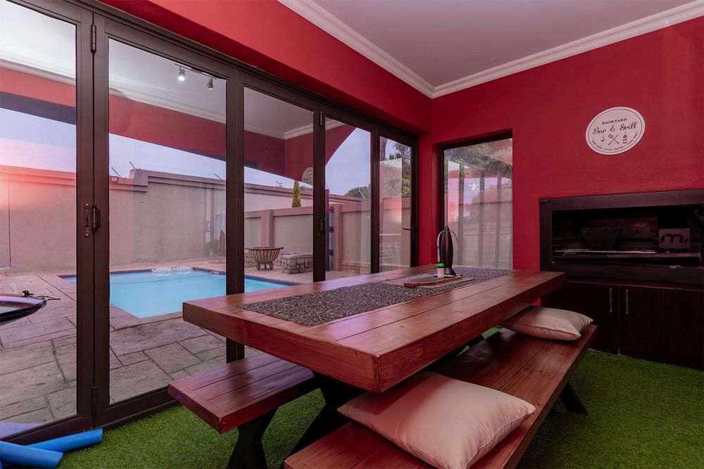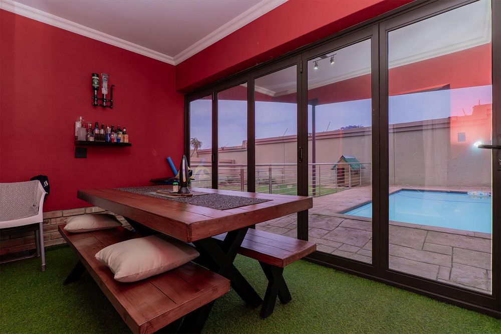 Outdoor living is a delight — the entertainment room opens to a heated swimming pool, established garden, and a beautiful boma area, creating the perfect setting for relaxation and entertaining.