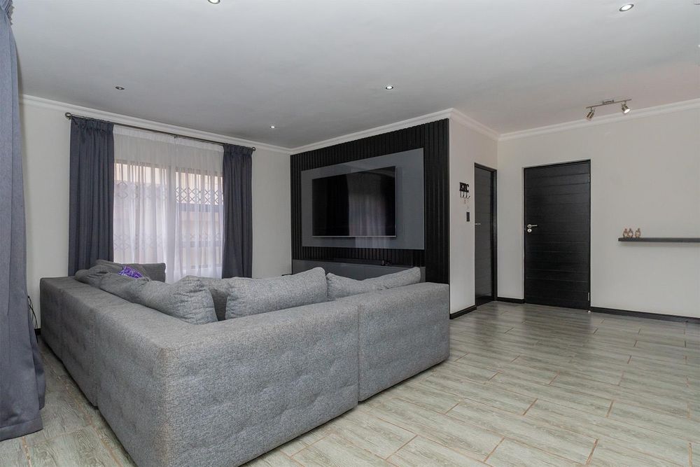 This elegant residence offers spacious open-plan living designed for modern family living and effortless entertaining. The lounge flows seamlessly into the dining area and the enclosed entertainment room, featuring stacking doors and a built-in braai — perfect for hosting family and friends all year round.