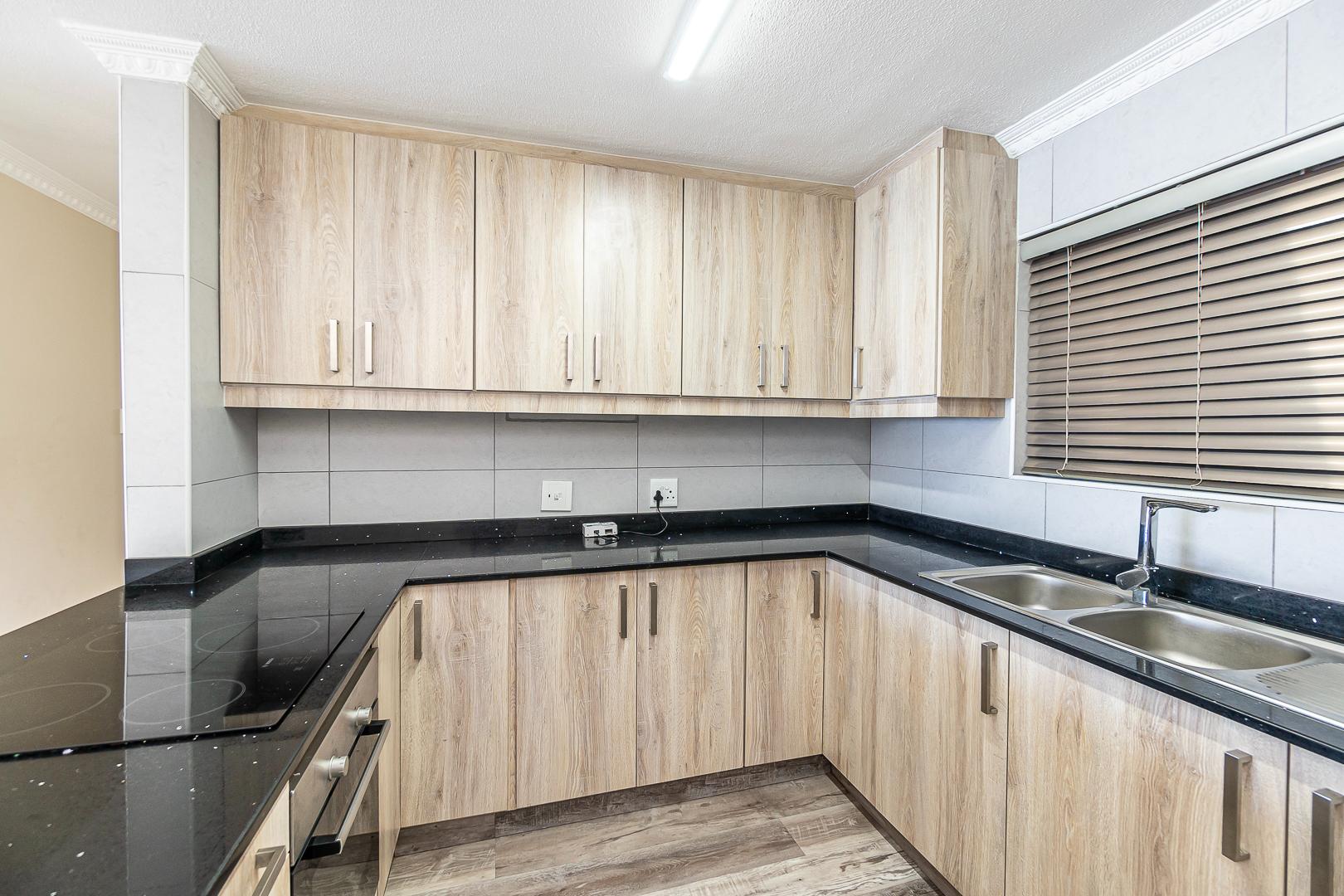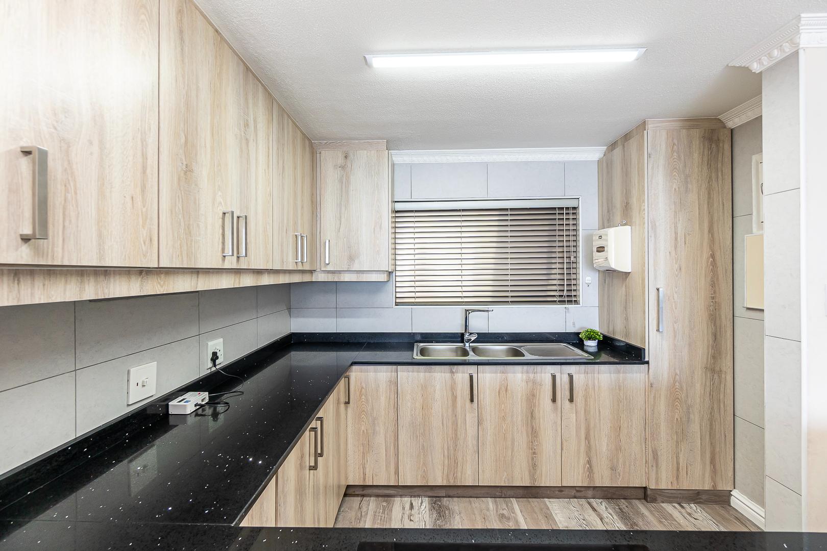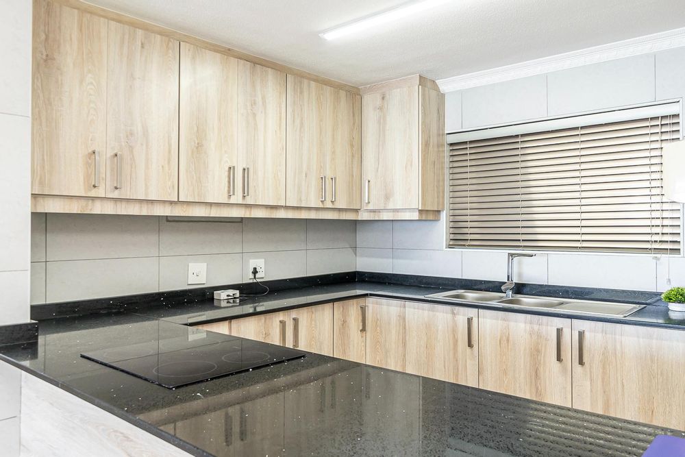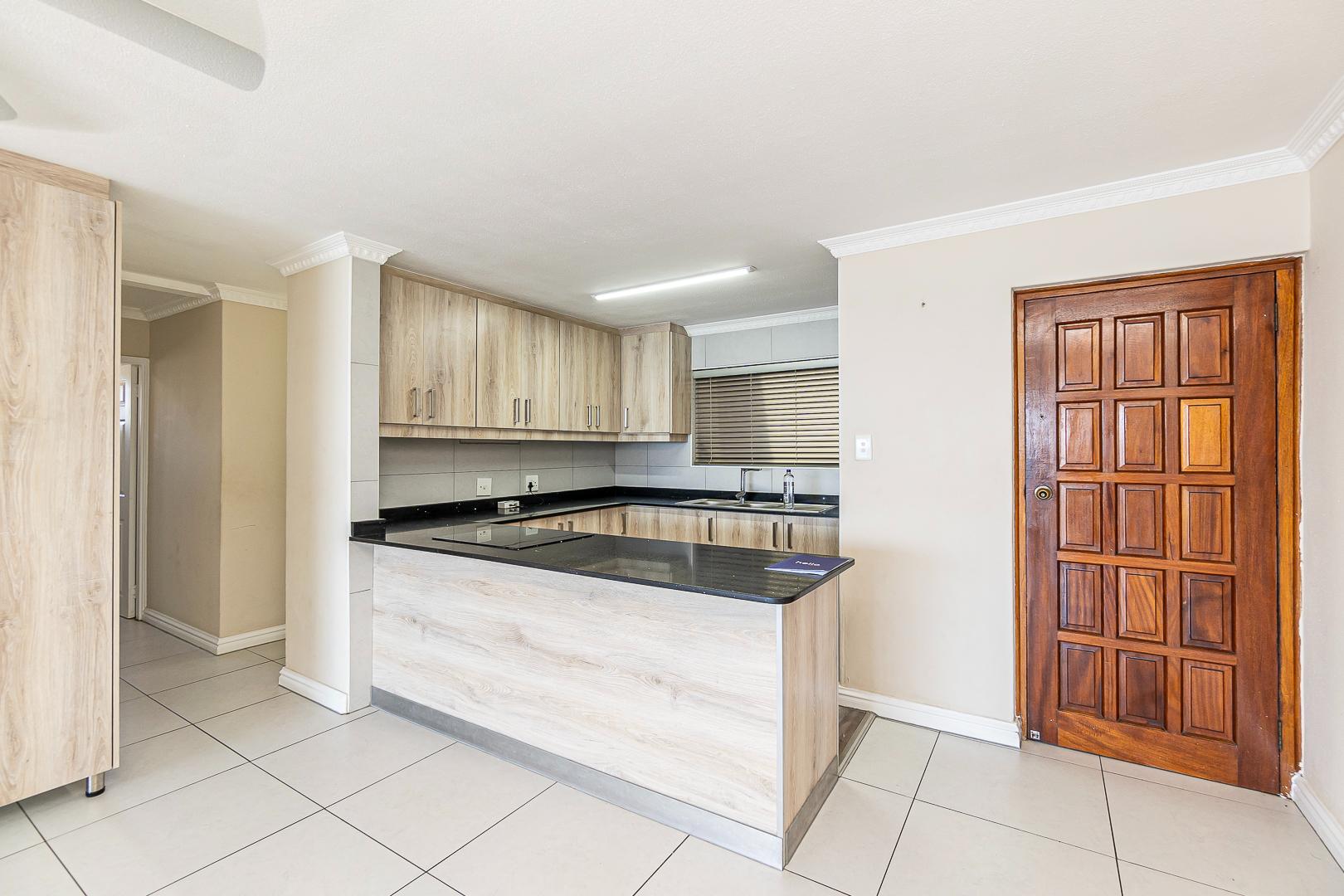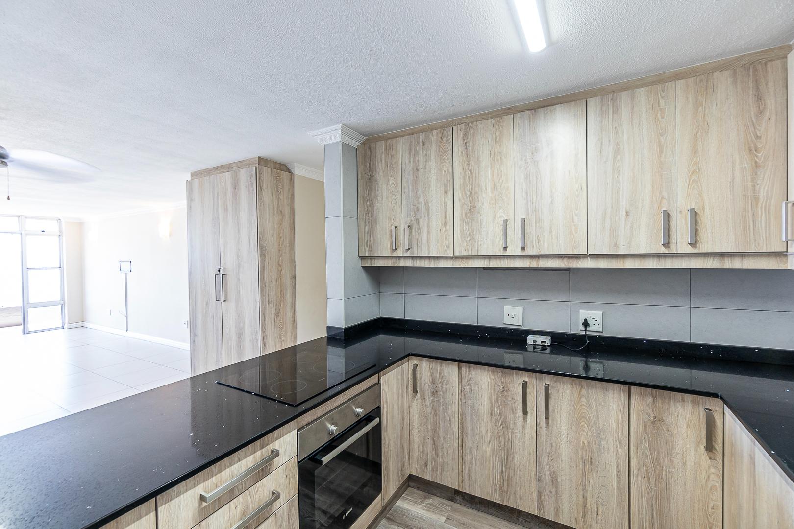 The open plan lounge, dining and modern kitchen lead to a private balcony. Modern cupboards throughout. The main bedroom has an en-suite and also leads to the private balcony.