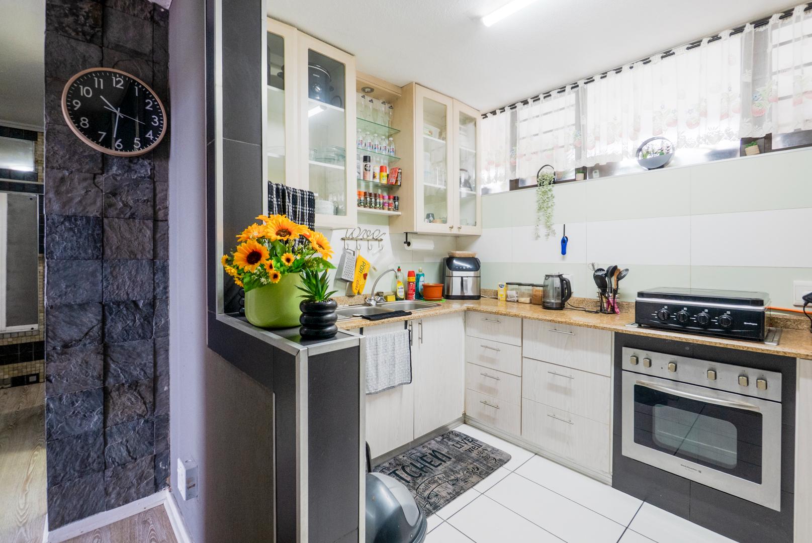 The spacious kitchen is fully fitted. Down the passage is two bedroom with built in cupboards. The 3rd smaller bedroom is adjacent to the lounge.