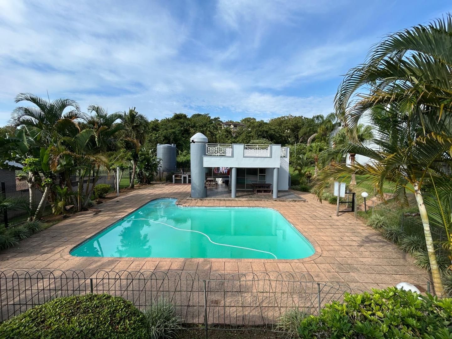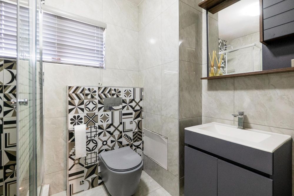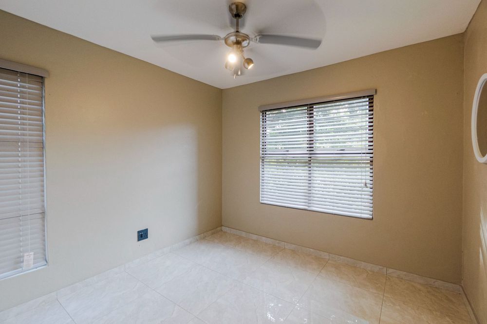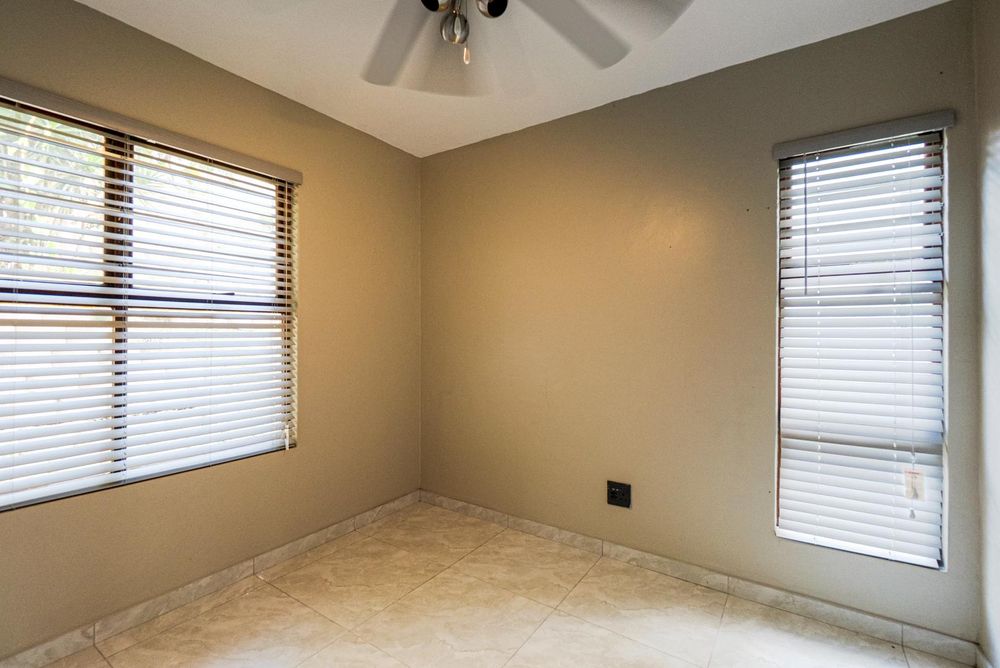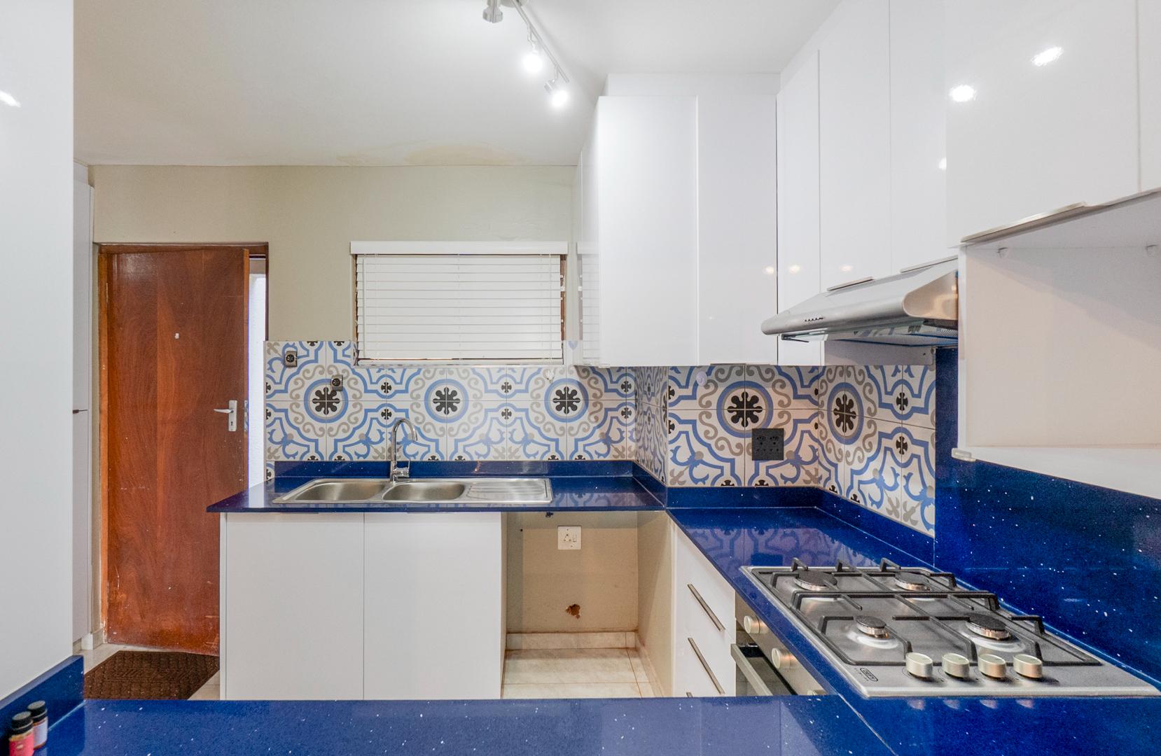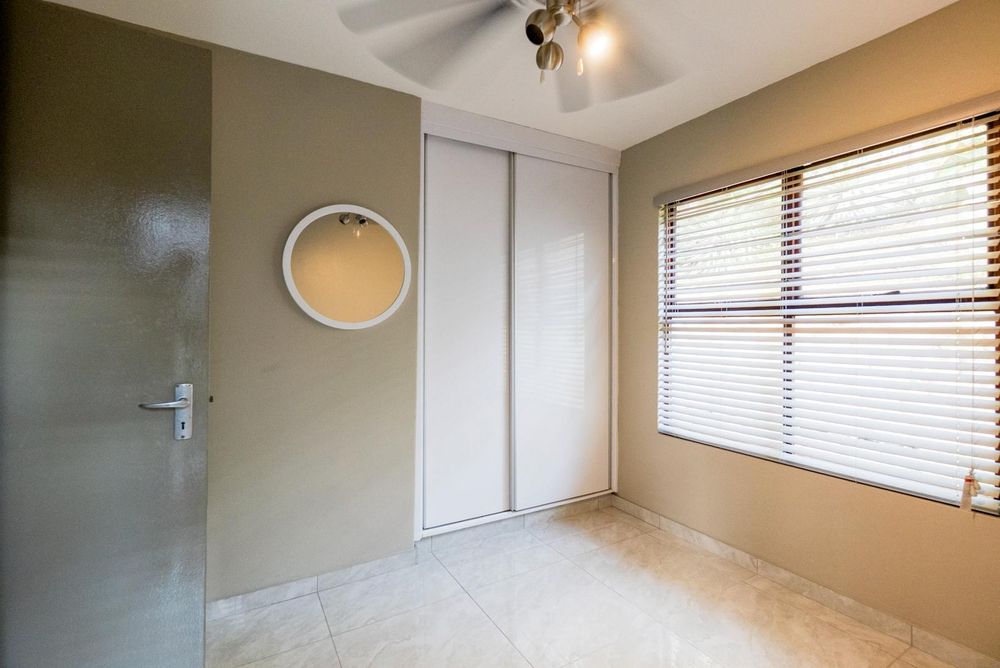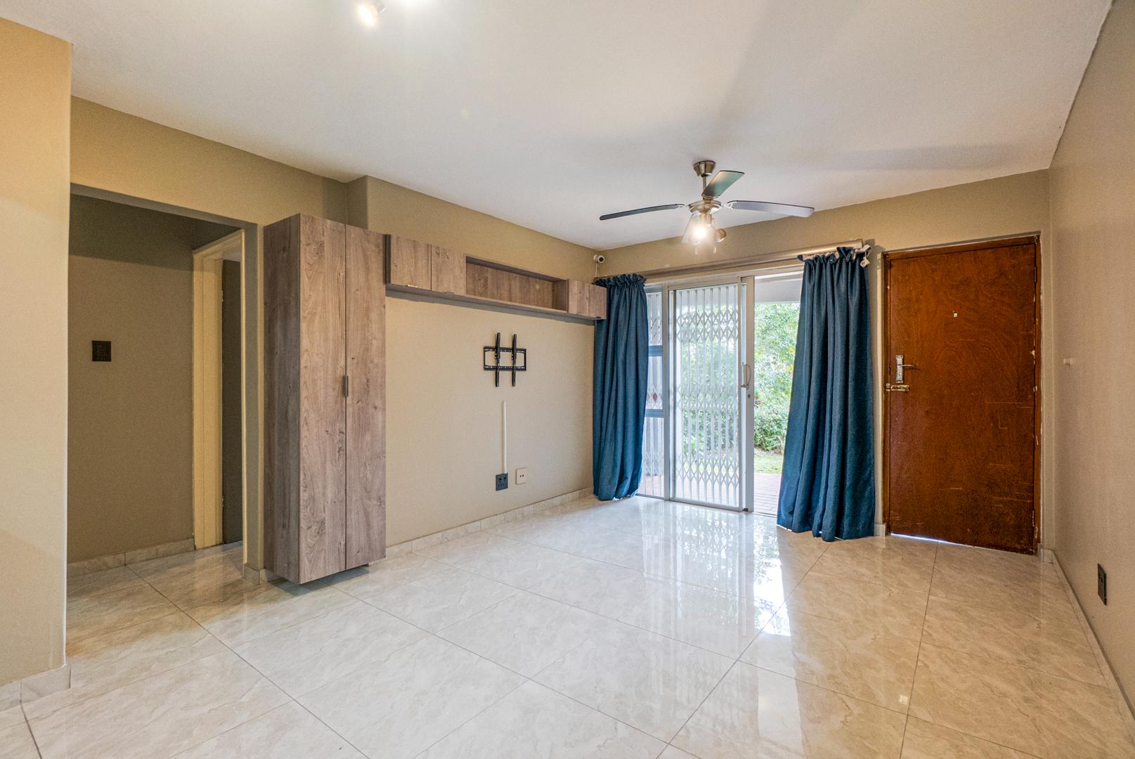The lounge leads out to an entertainment space with your own braai area. There is also a swimming pool in the complex and additional entertainment communal areas.
