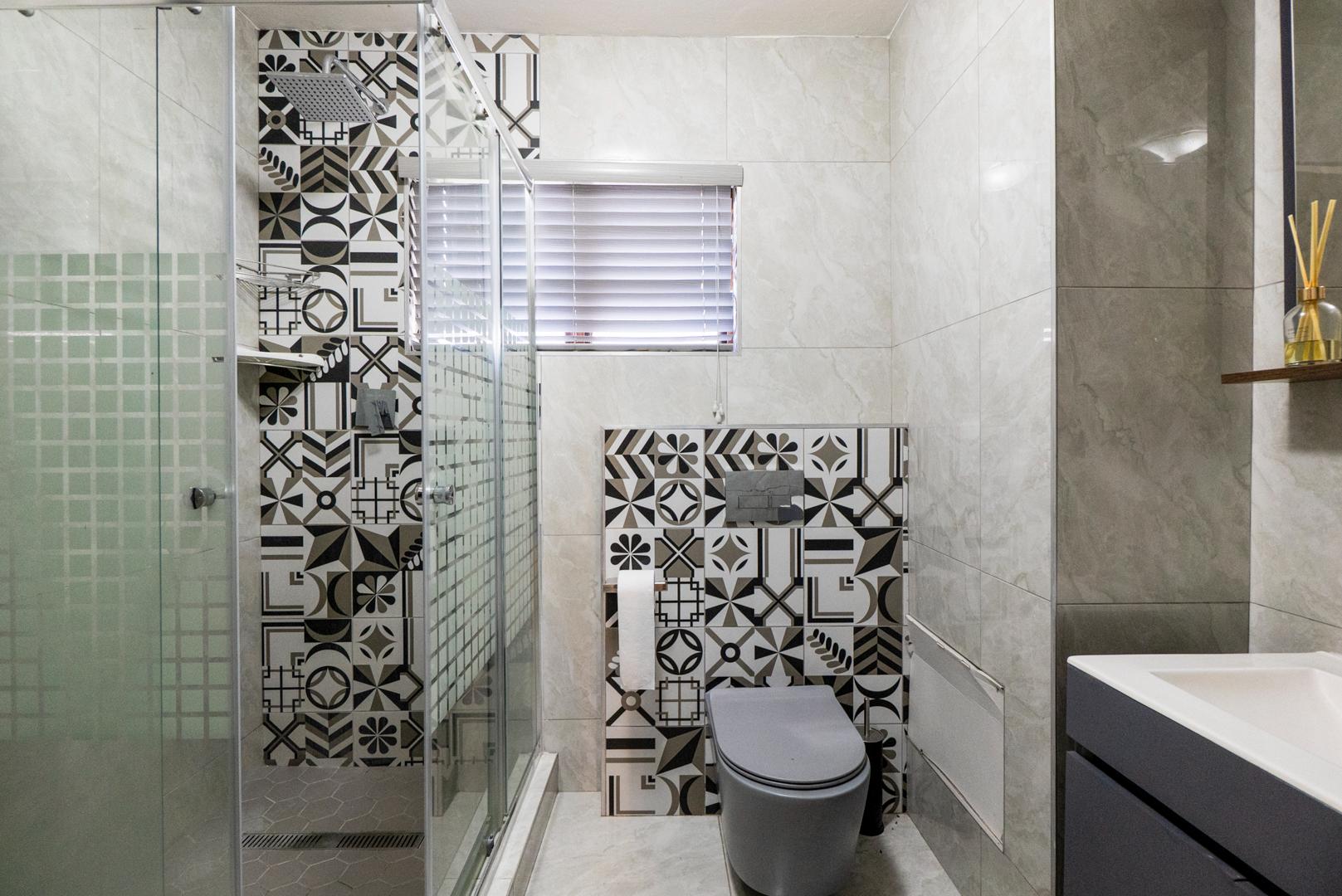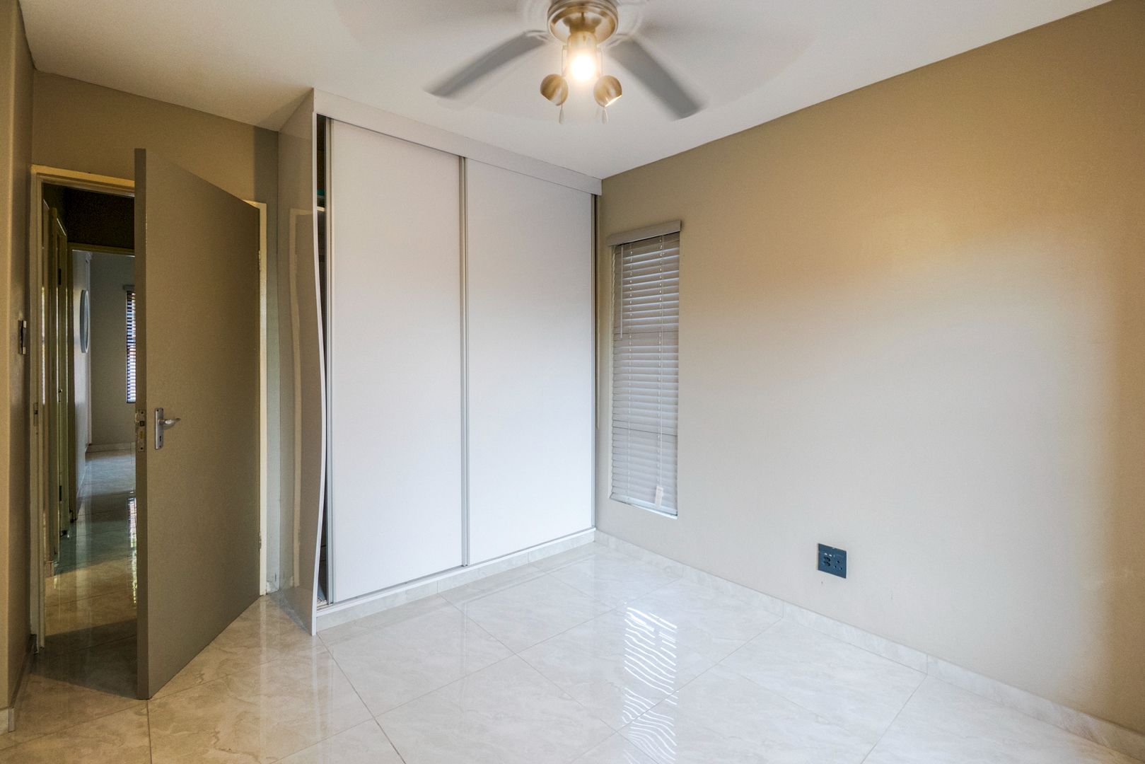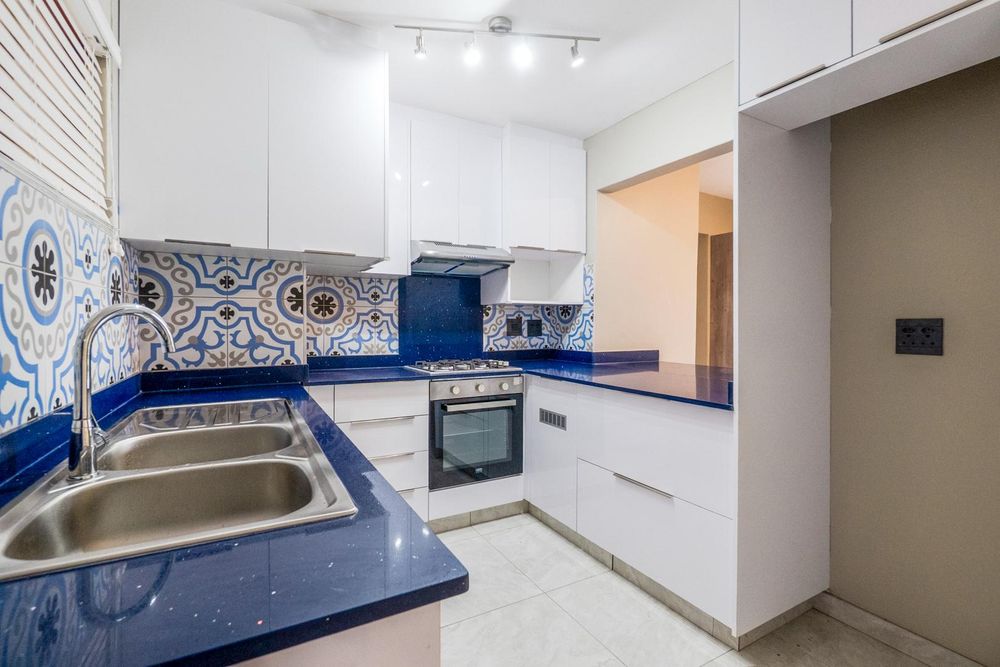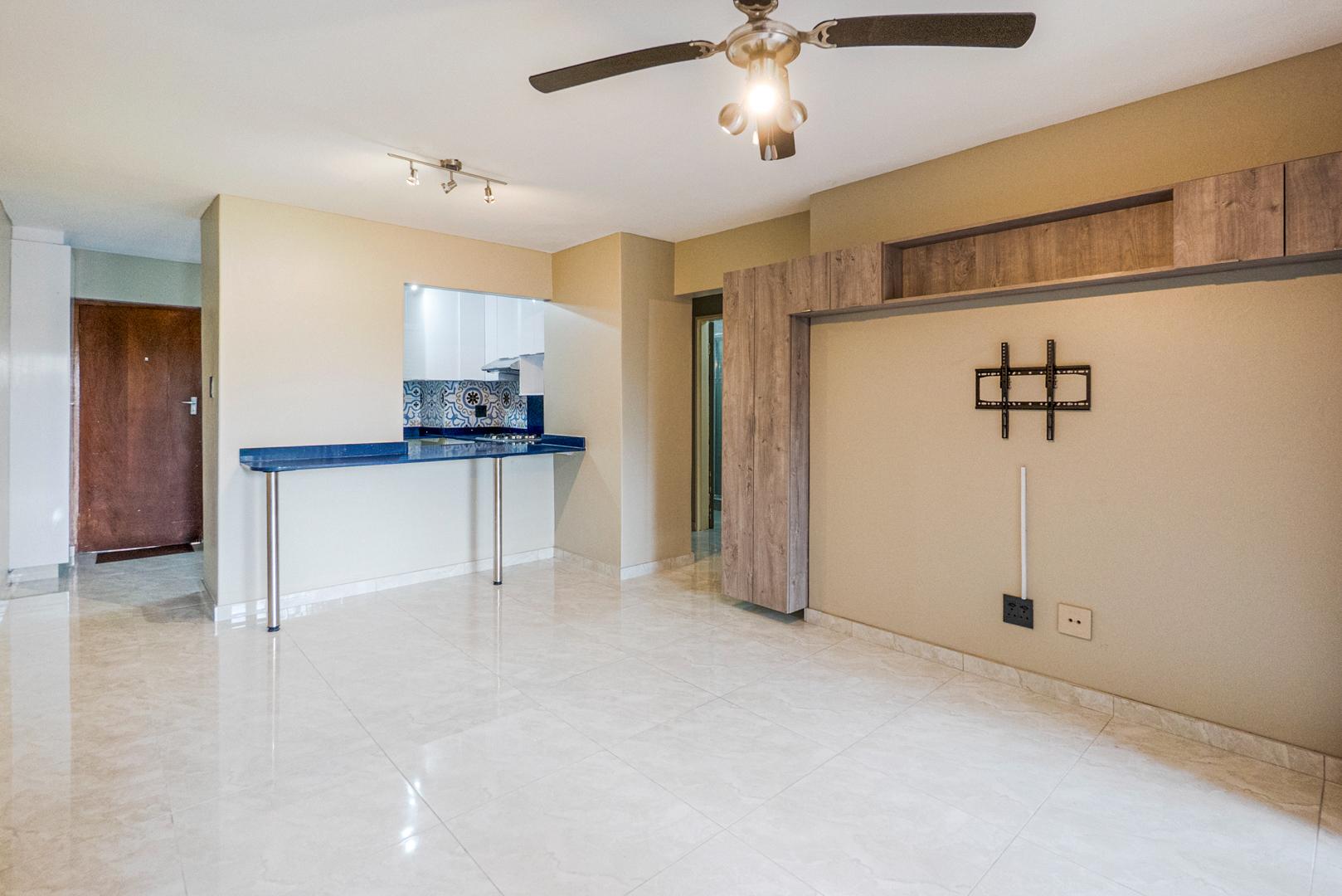 Walk into a living space open plan with the designer kitchen. Two bedrooms with slide cupboards. Modern shower with bathroom cabinet. Apartment is tiled throughout.