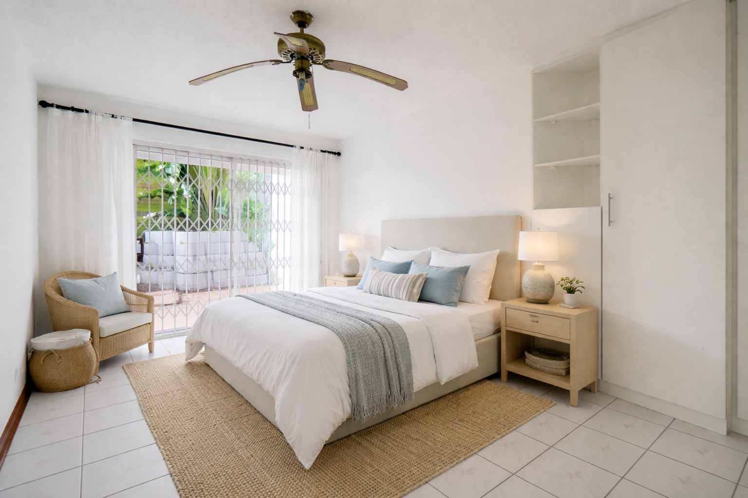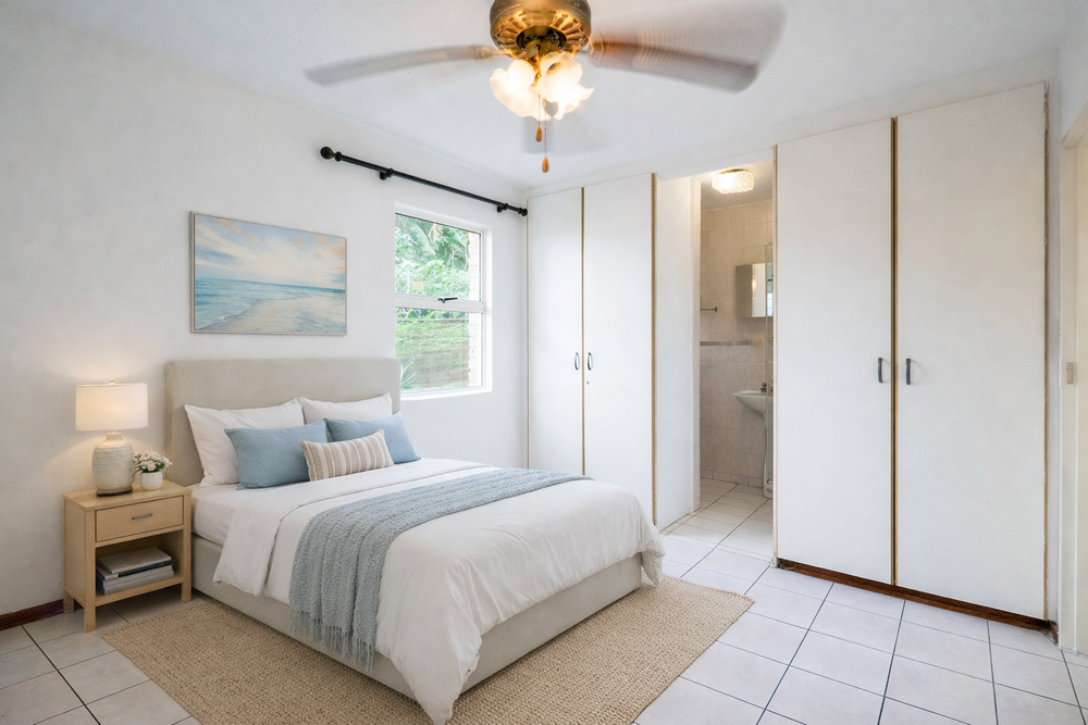 Down the passage are the bedrooms with built in cupboards. There is also a walk in closet. One of the bedrooms has its own outside private court yard.