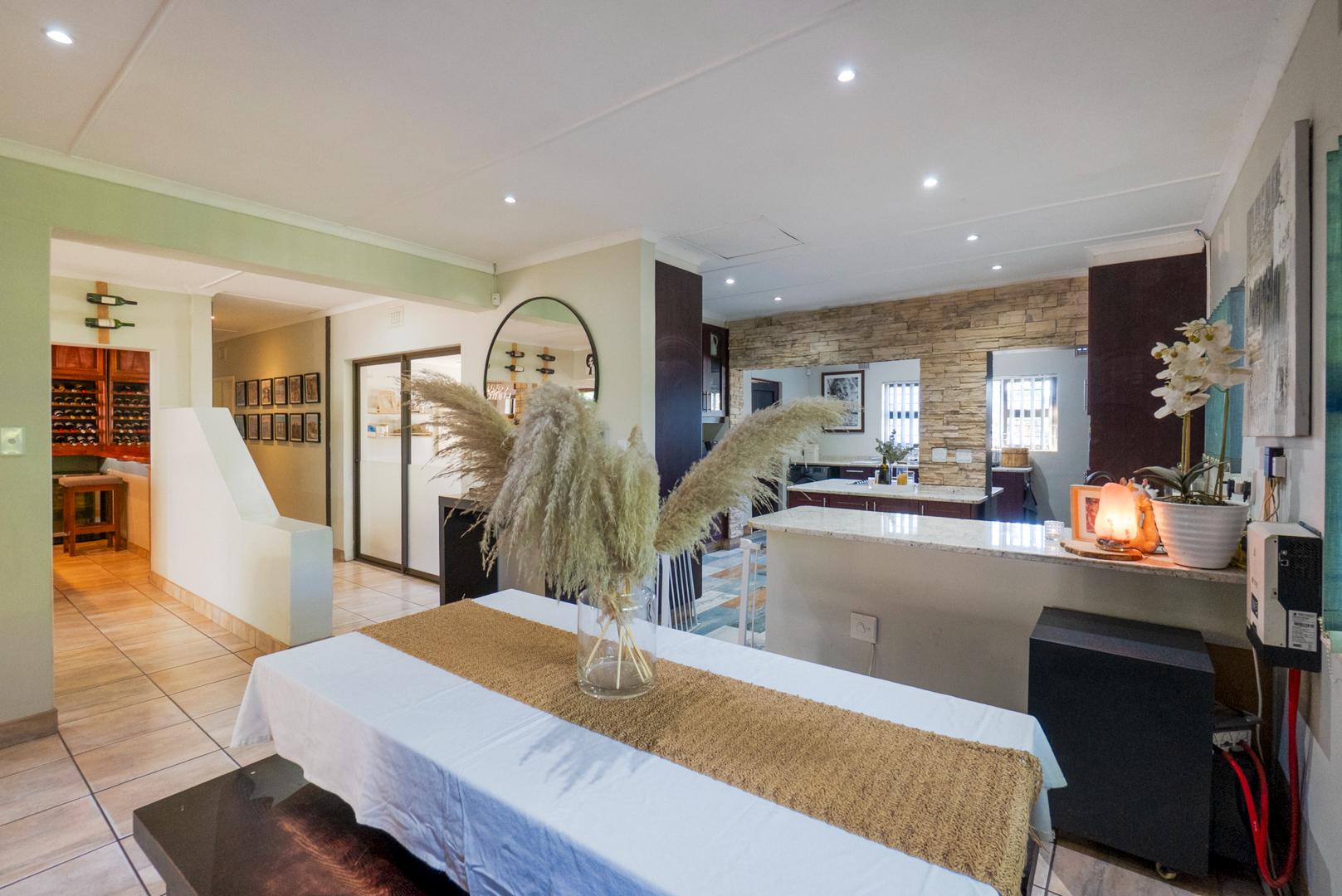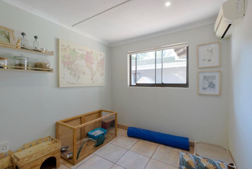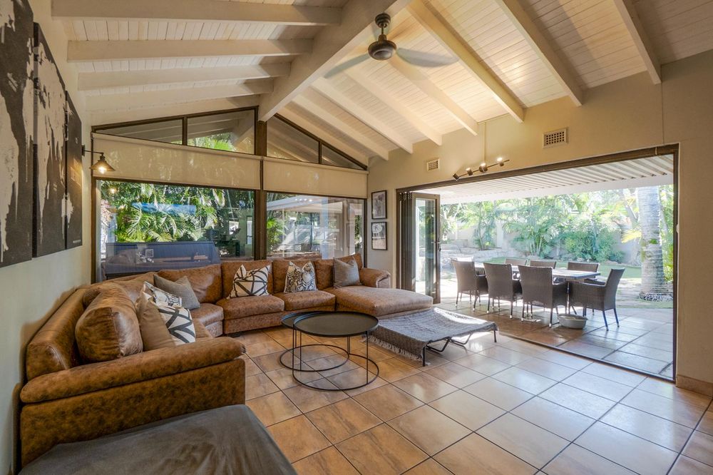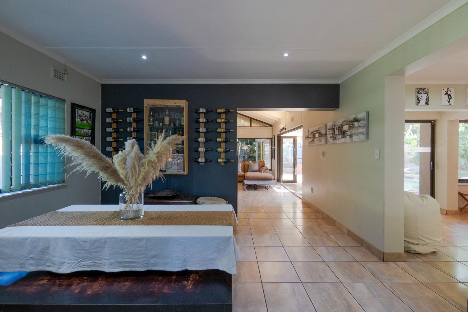 The enclosed entertainment/bar area provides a stunning view of the swimming pool, perfect for relaxing or entertaining guests. Down the hall, you'll find a dedicated work-from-home or study area, making this property as functional as it is beautiful. The generously sized bedrooms ensure comfort for all, with the main bedroom featuring an en-suite bathroom and doors that open to the meticulously manicured garden.