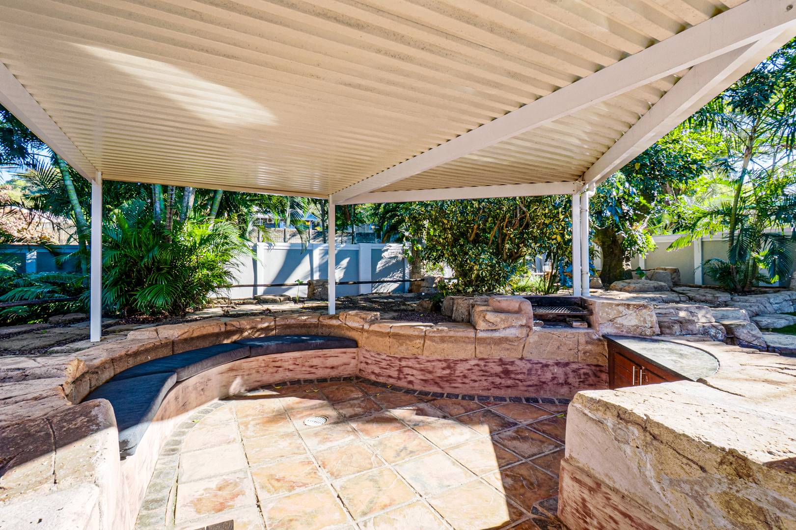 As you step through the front door, you are immediately struck by the grandeur of high ceilings in the lounge area. The stack doors seamlessly blend indoor and outdoor living, allowing you to bask in the tranquillity of a beautifully landscaped garden, complete with a rock pool and an entertainment area perfect for hosting gatherings.