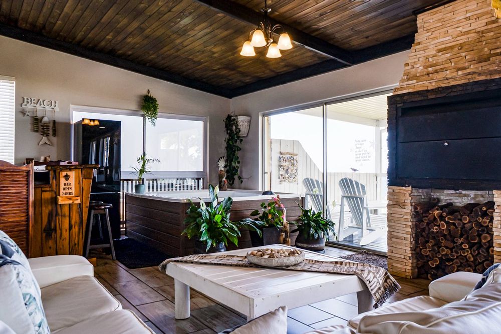 The open plan lounge leading to the massive entertainment area is nothing short of WOW. From a bar, to a brand new jacuzzi, to ample space for a pool table and a dining suite. Step outside onto the wooden deck and enjoy the ocean. 180 degree open sea views!