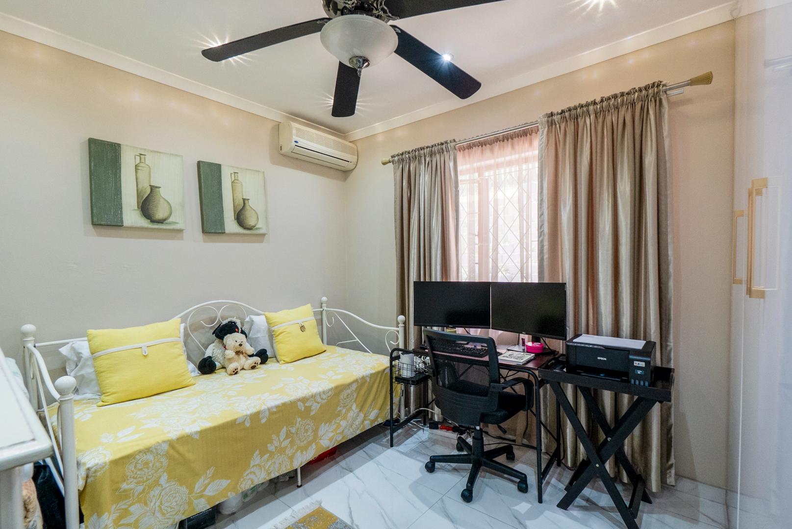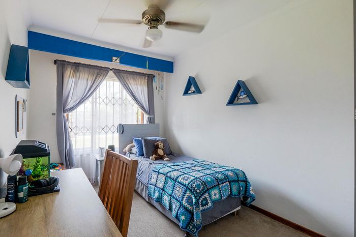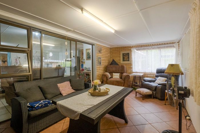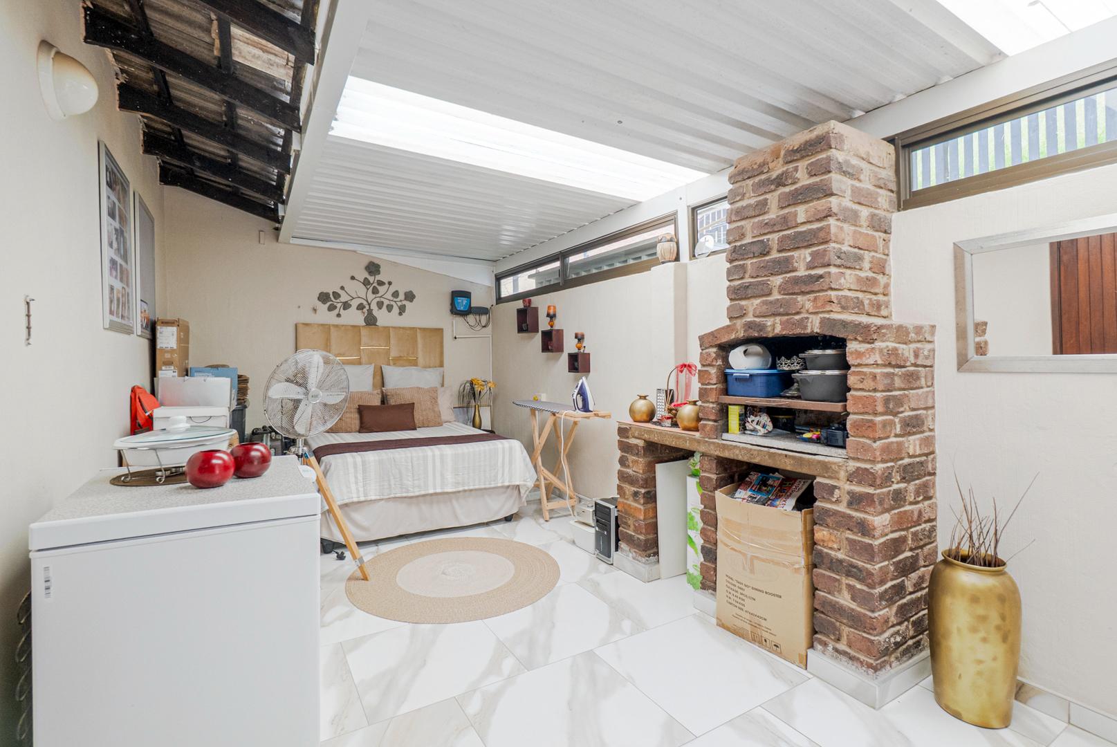 The enclosed entertainment area has a built in braai. The entertainment area currently serves as a multi-purpose area as the 4th bedroom. The double garage leads directly into the entertainment area. There is an additional carport for your vehicles as well as open parking.