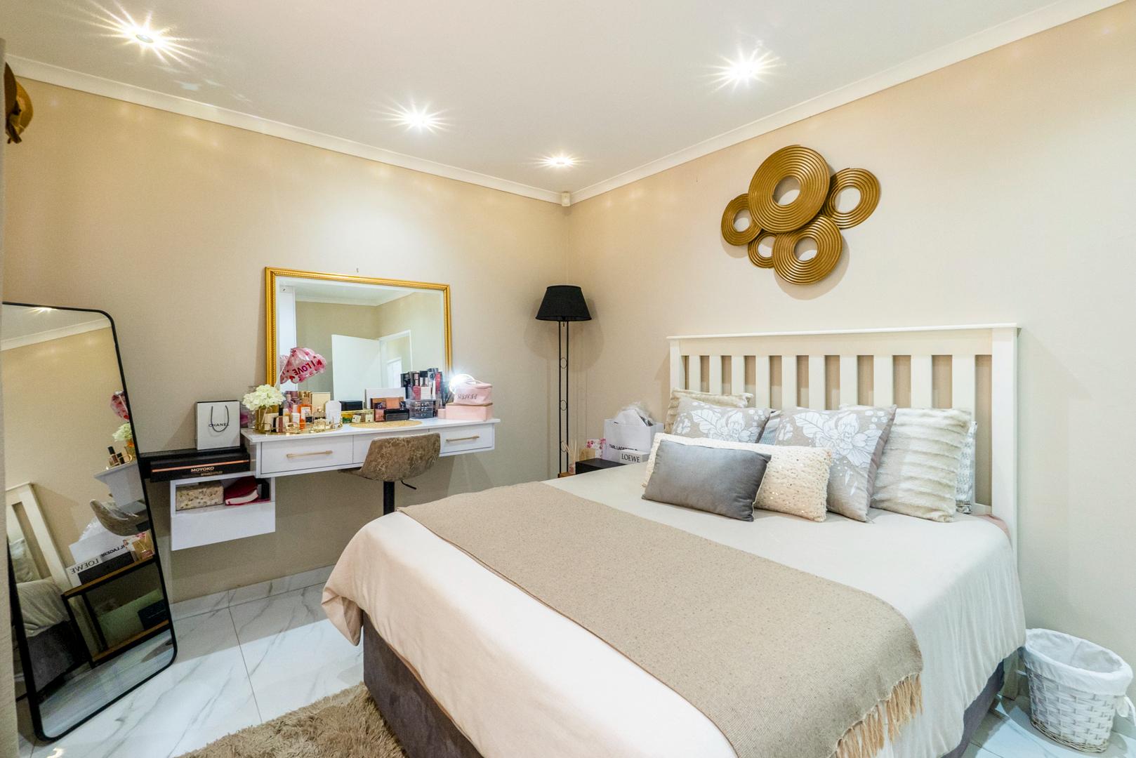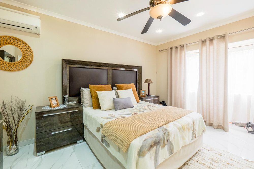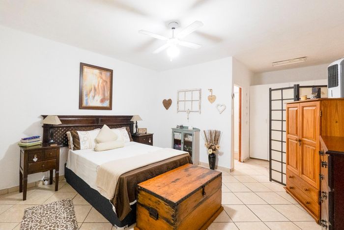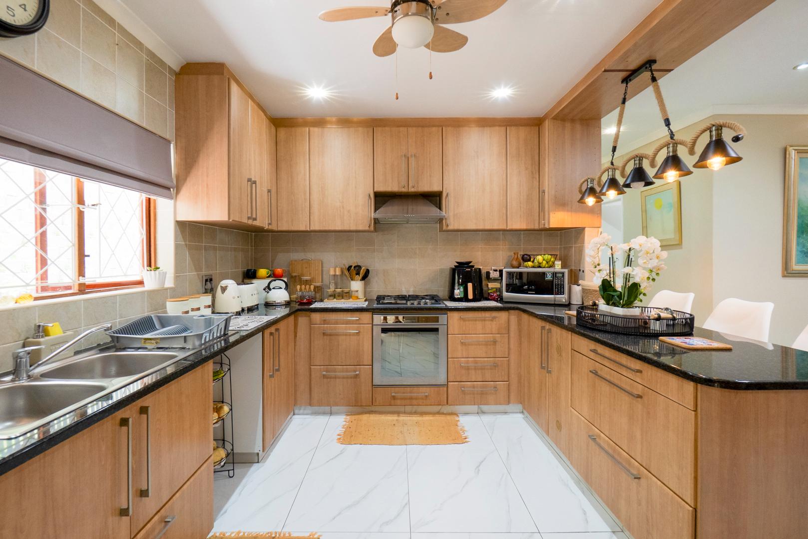The enclosed entertainment area has a built in braai. The entertainment area currently serves as a multi-purpose area as the 4th bedroom. The double garage leads directly into the entertainment area. There is an additional carport for your vehicles as well as open parking.