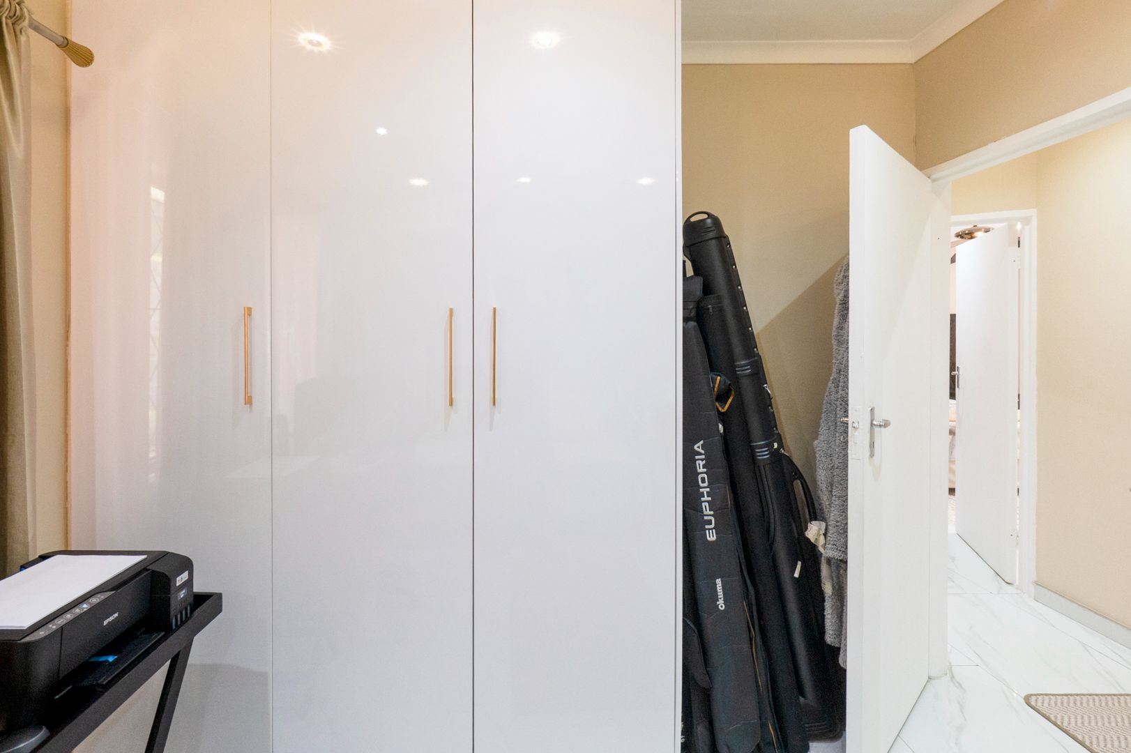 The open plan lounge and dining room leads you to a fully fitted kitchen. Down the passage are three spacious bedrooms, all with built in cupboards. The main bedroom has an en-suite. Both bathrooms have fabulous walk in showers.