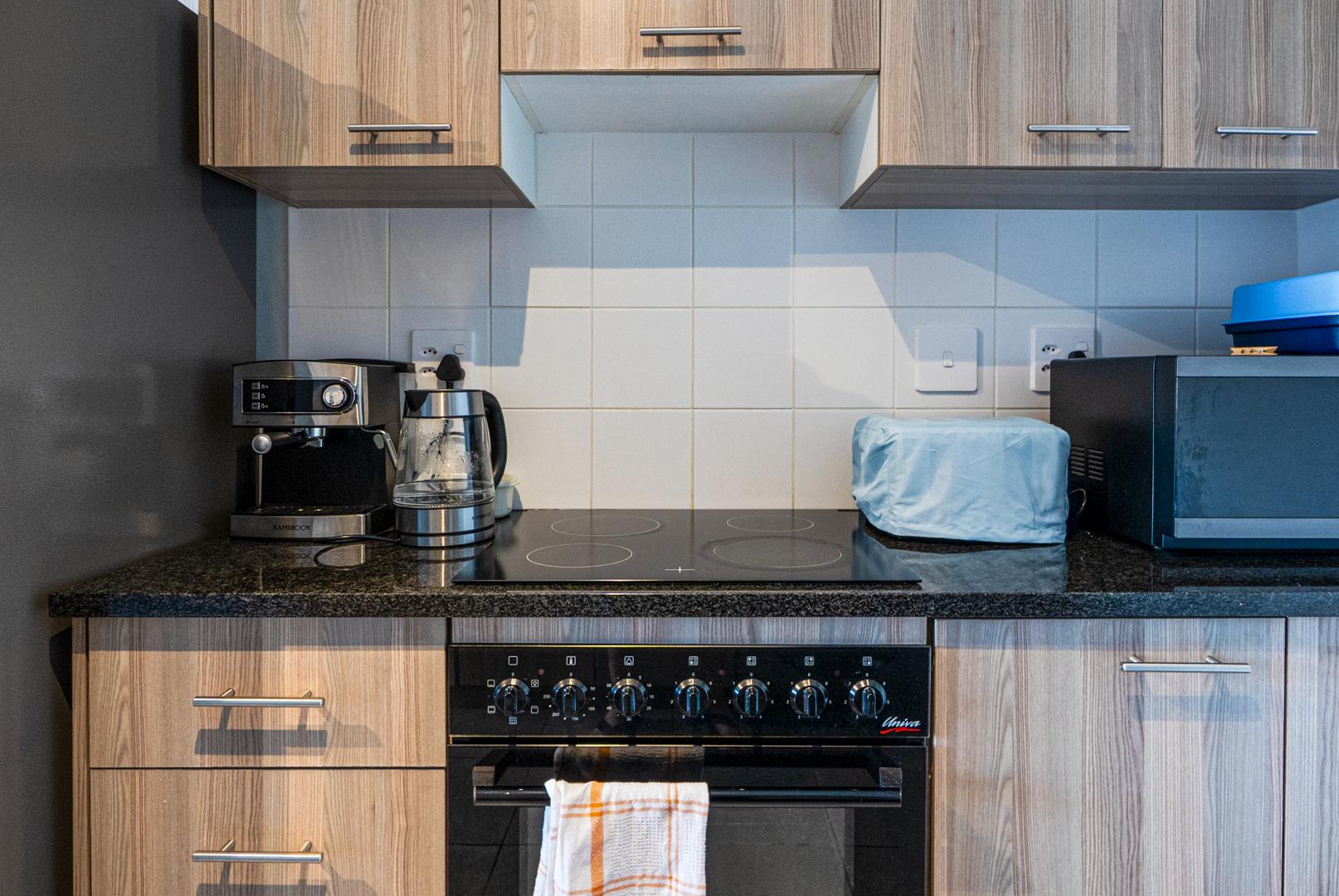 Tiled throughout with two fitted air-conditioners. Built in stove and over and ample space for appliances with a double sink. The geysers are solar-powered for lower utility costs.