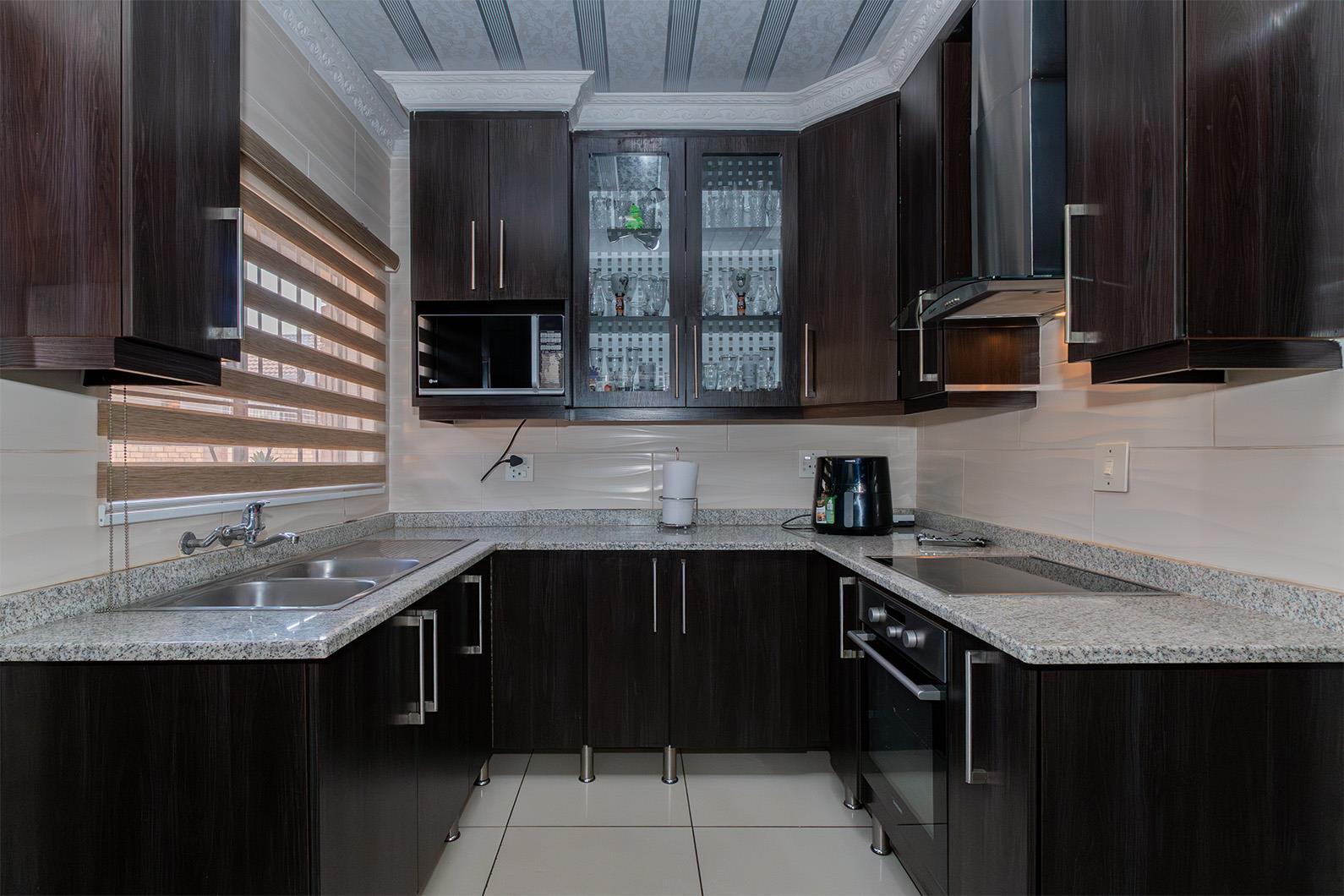 The modern kitchen is a true showpiece, featuring granite countertops, ample built-in cupboards, and a gas stove – making meal preparation both practical and enjoyable.