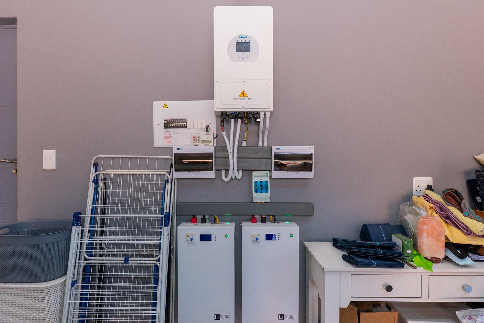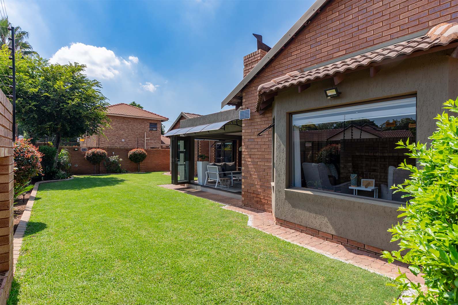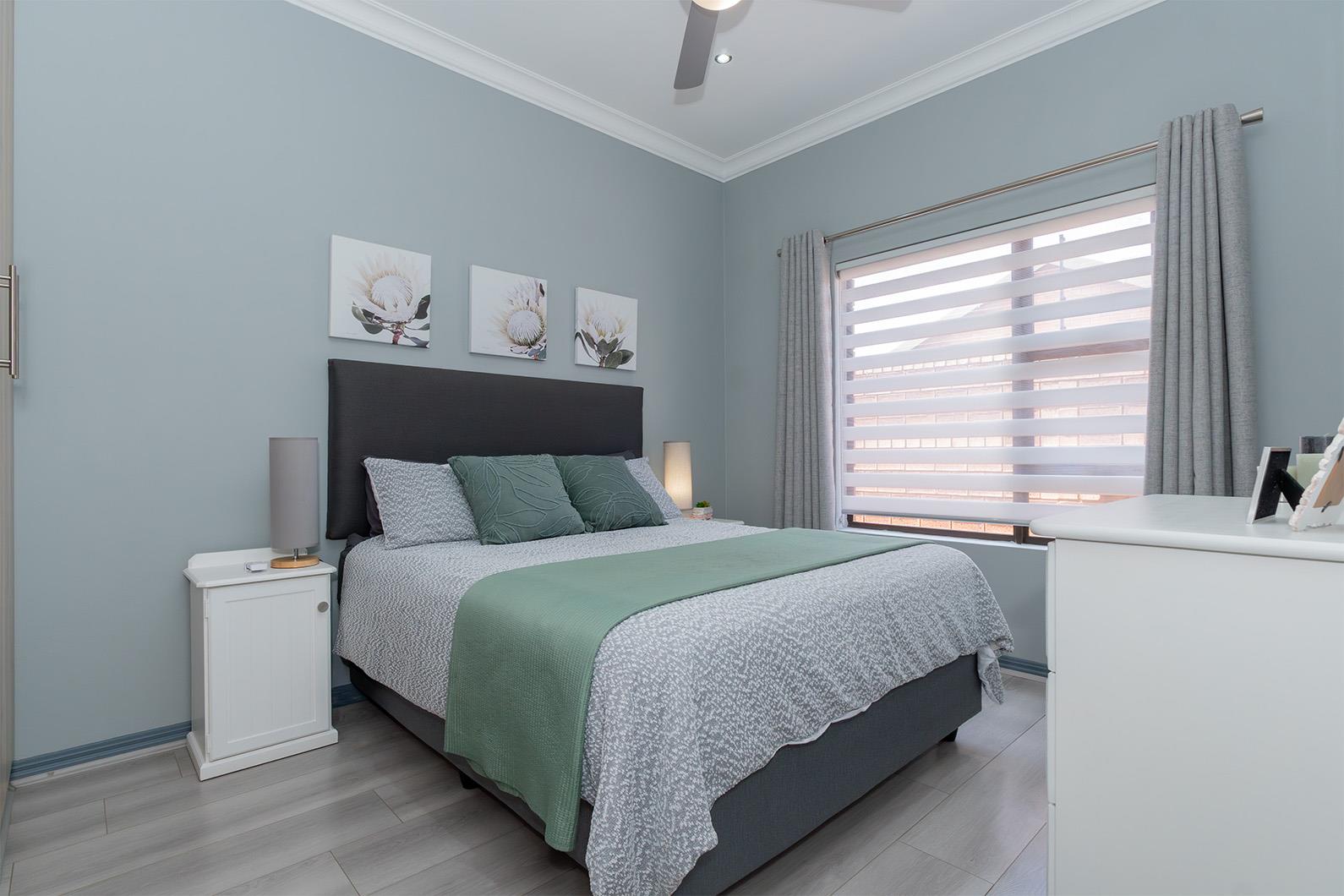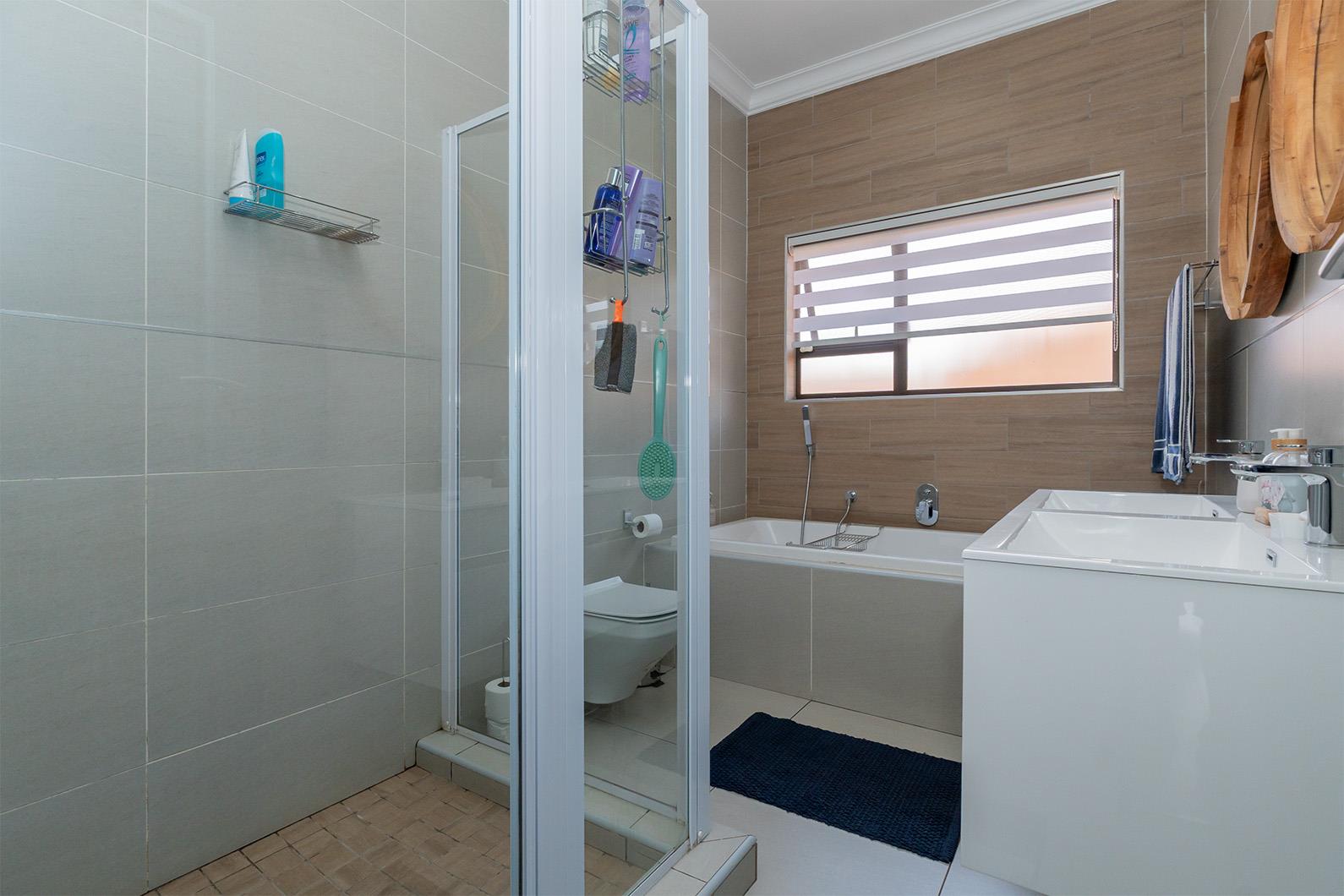 Step inside to discover a home that's both stylish and energy efficient. Equipped with a 5KVA Deye inverter, two batteries, and eight solar panels, this property significantly reduces electricity costs by powering the entire home except for the oven and gas geyser. The kitchen boasts a 5-plate ELBA stove, also powered by gas, ensuring cooking is both efficient and convenient. Outside, a private garden awaits, featuring an irrigation system and a charming covered patio with stacking doors and a built-in braai, perfect for entertaining.
