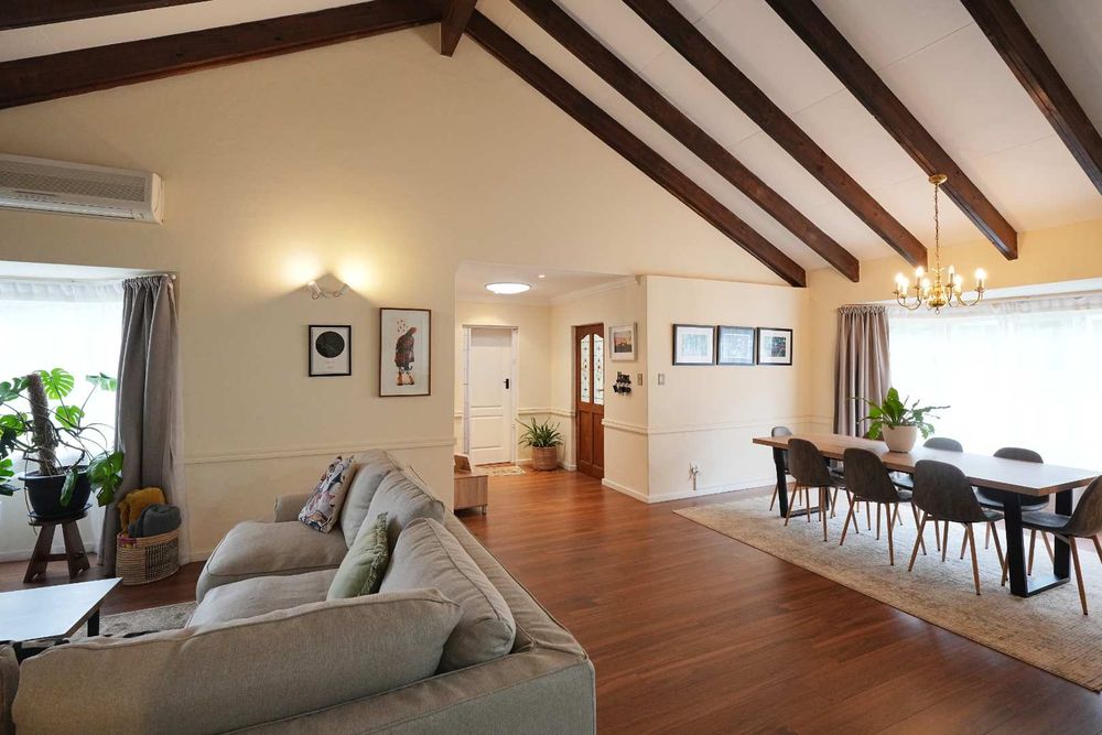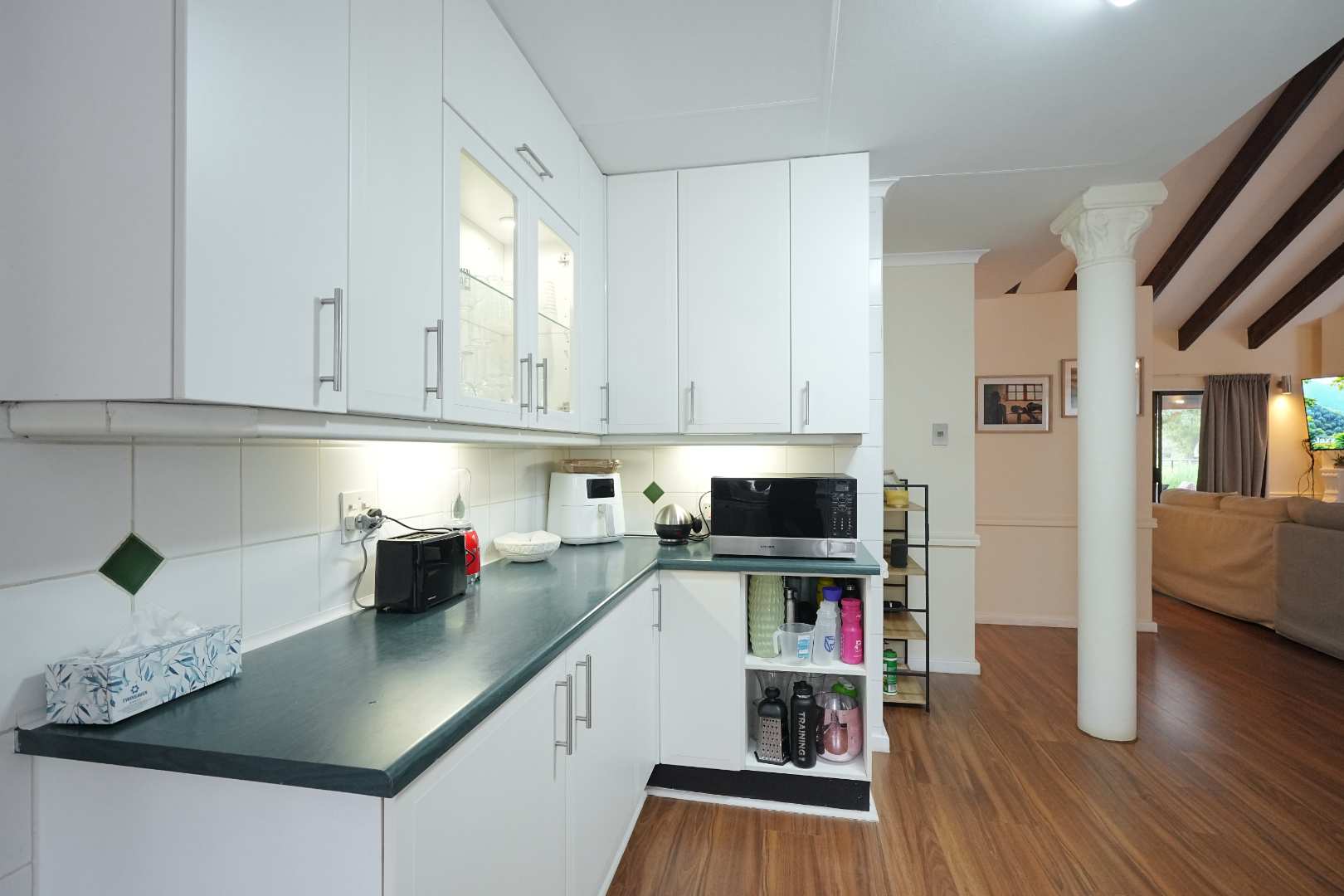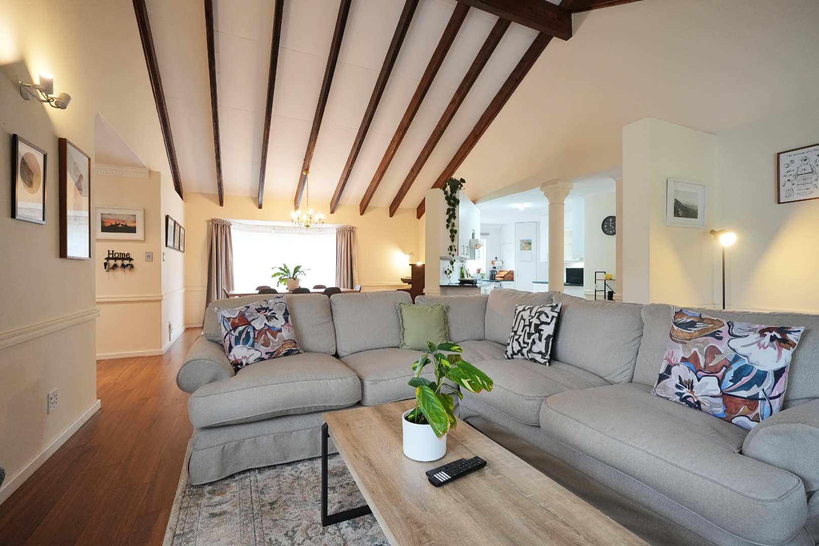 This 3 bed 2 bath (mes) family home offers space with its magnificent indoor / outdoor living. The renovation has left no stone unturned, it's simply immaculate. The 3 garages are a luxury, all on remote control. They lead straight into the home, where you pass the grand main entrance. The lounge is to die for with its double-volume roof and extravagant contrasting wooden beams. The dining room is part of the same opulent space. The kitchen is semi open plan to both areas and has everything you need, including a scullery section, ample counter space, and many cupboards. All bedrooms are generously sized. The 2nd bathroom has only a shower, but the main ensuite has both a bath and a shower. The architectural design is incredible, and breathtaking in parts. The covered patio leads to a courtyard / garden that must be witnessed in person, simply divine. There is a outside gym / bar room depending on your desires. The tranquillity, the views and the position are second to none. Call David to view it.