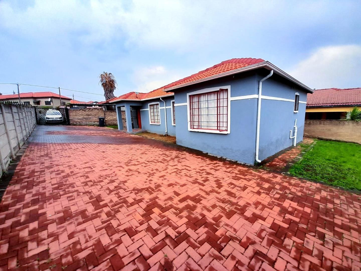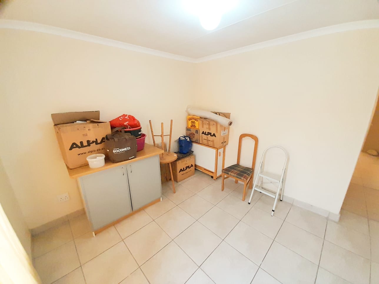 This exceptional three-bedroom home in Cosmo City presents an inviting open-plan kitchen with a built-in stove, oven and extractor, leading to the splendid dining area and lounge, complemented by a generously sized bathroom, an ensuite and stunning tiles. The bedrooms are thoughtfully designed with built-in wardrobes and feature elegant finishes. The property comprises a double carport and ample visitor parking. Safety is prioritised with a panhandle driveway.