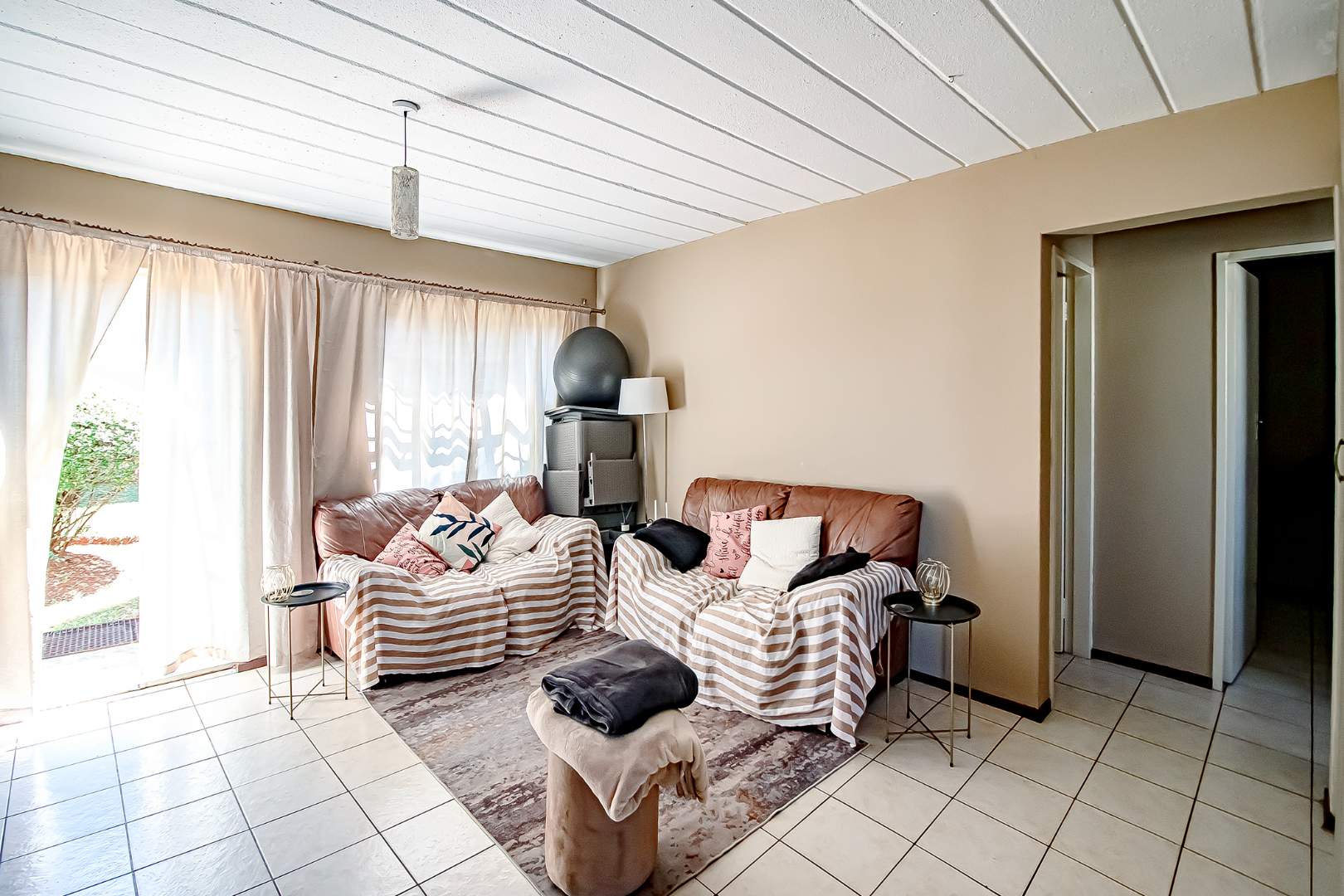 This garden unit offers a well sized lounge with an open plan kitchen with