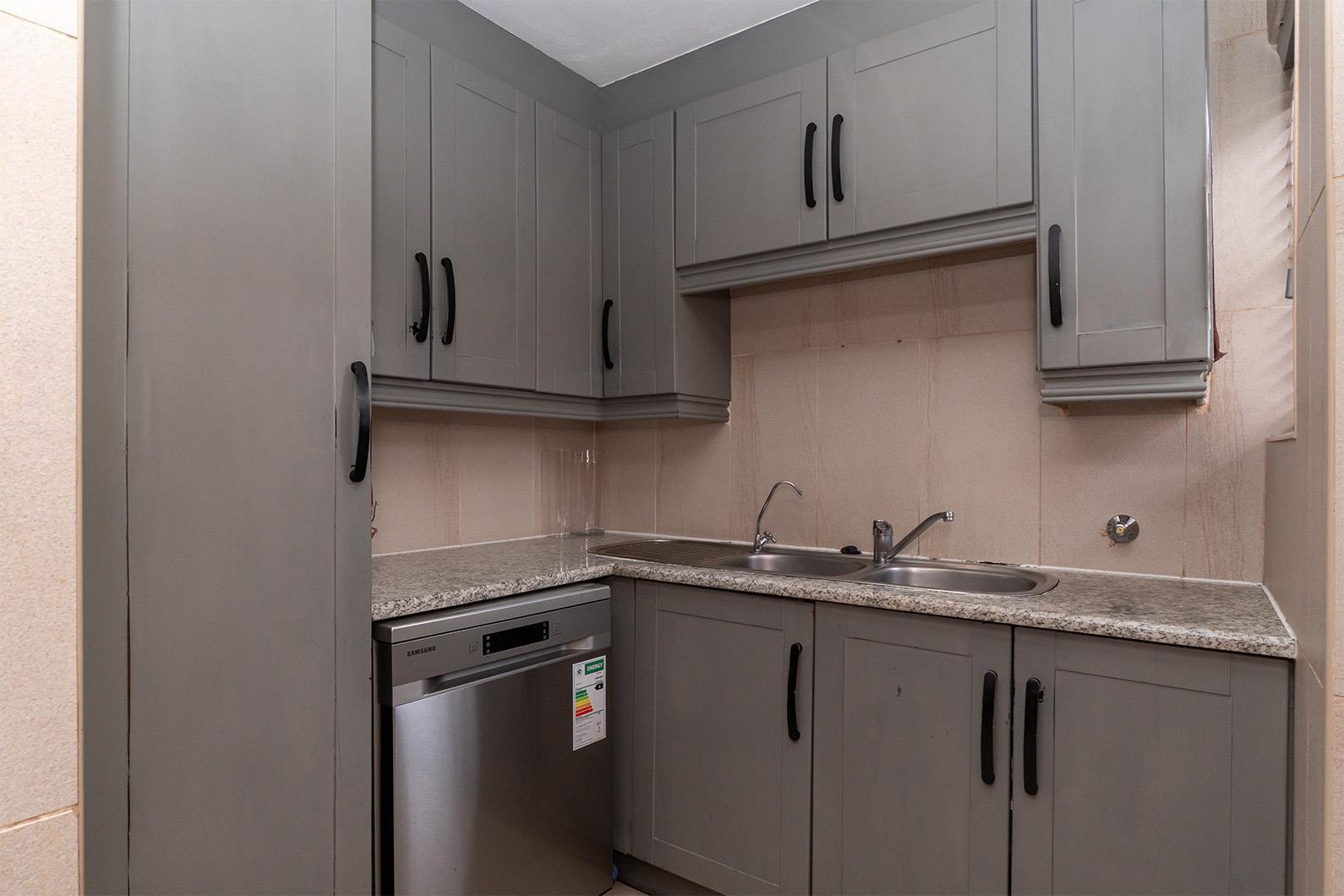 The modern kitchen is fitted with granite countertops, ample cupboard space, a gas stove, and a separate scullery area for added convenience.