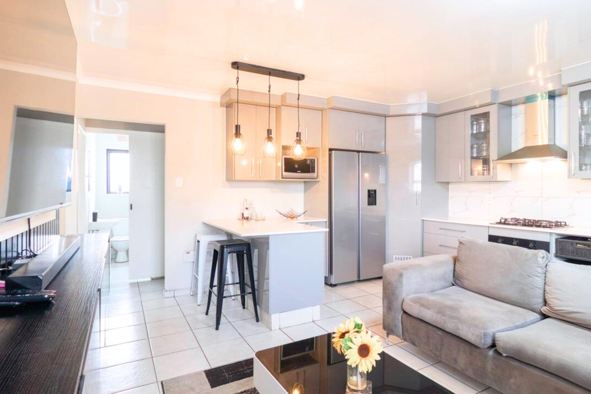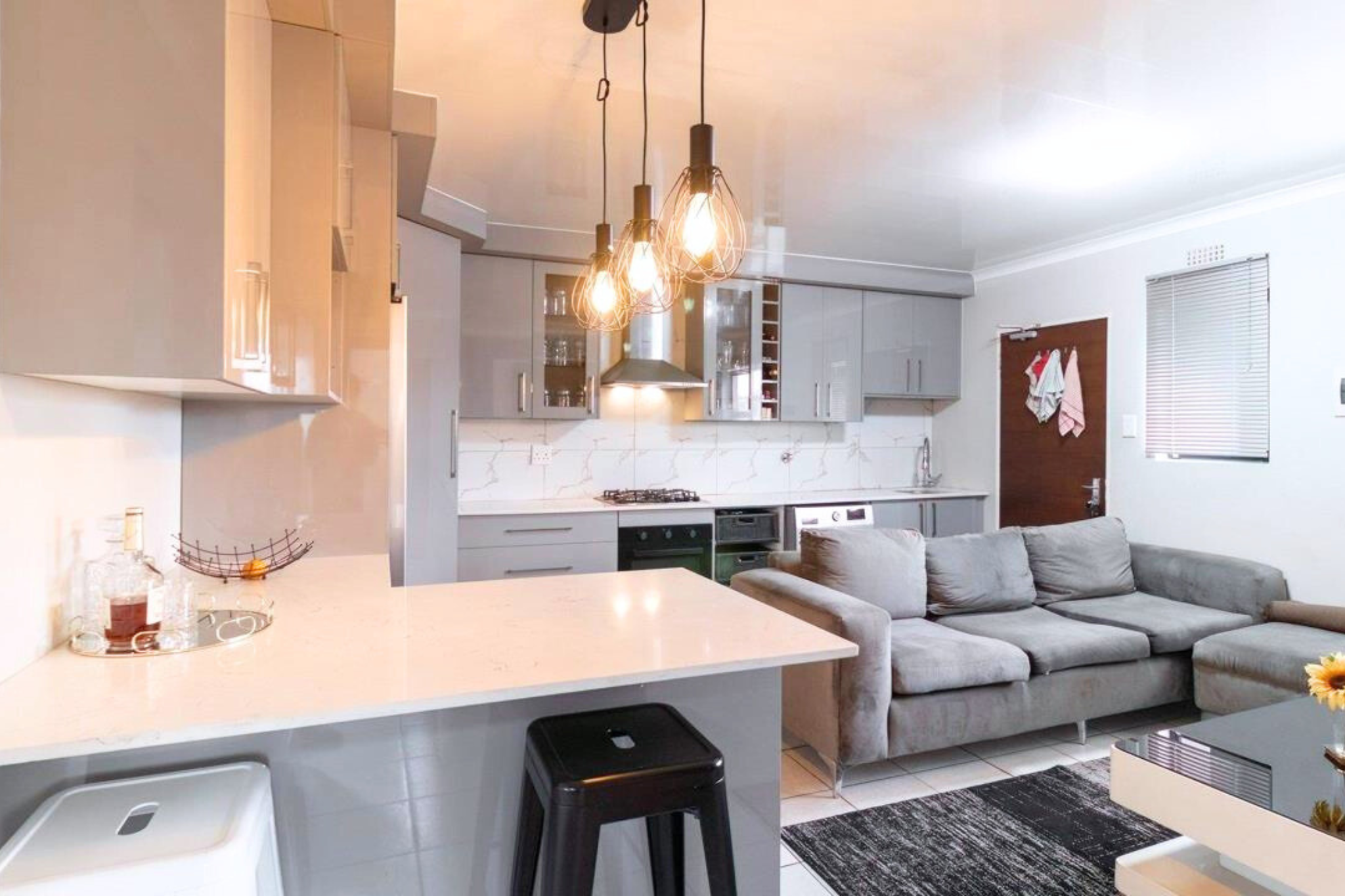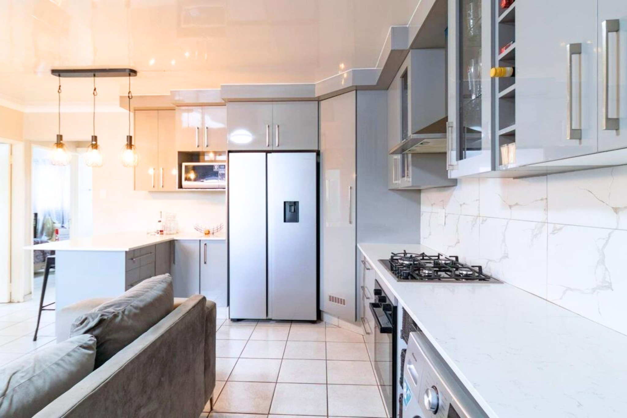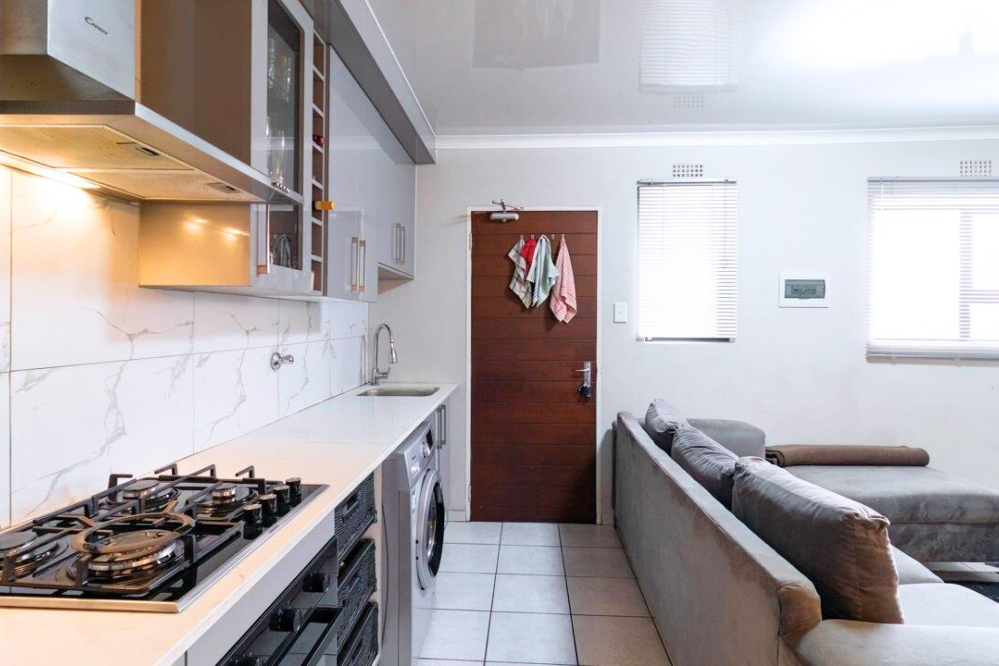- Sleek, modern kitchen with built-in cupboards