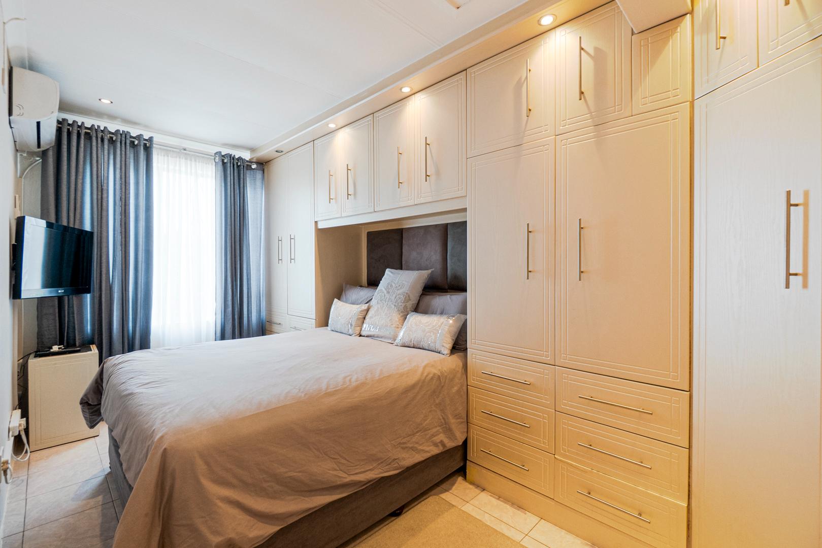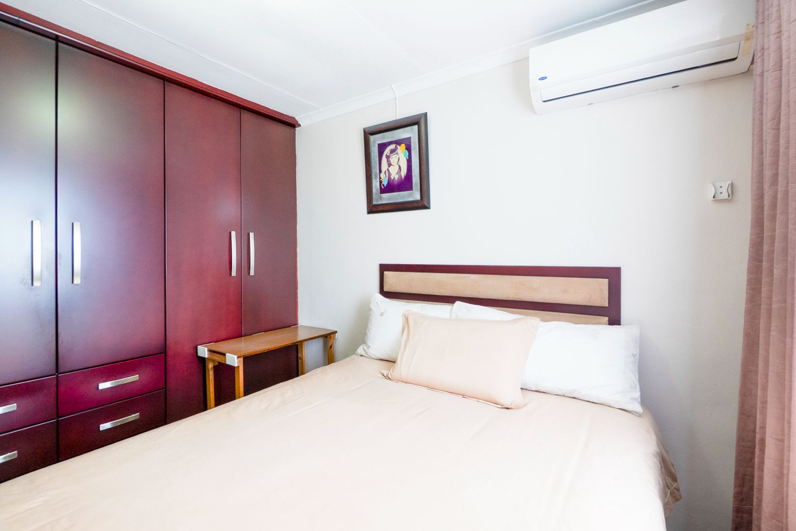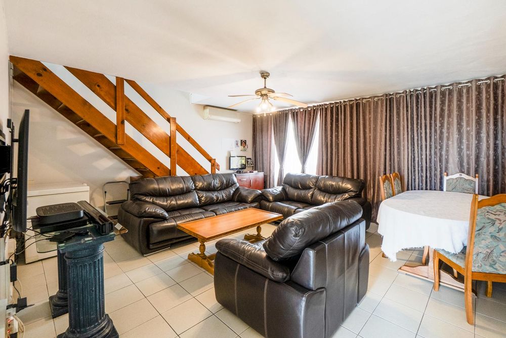Upstairs there are three bedrooms with lots of cupboards. Aircons in 2 of the bedrooms. Walk in shower and separate toilet. Downstairs there is an additional room, currently used as a store room. Perfect for a young adult still at home as it has its own entrance - or for a study/additional living area.