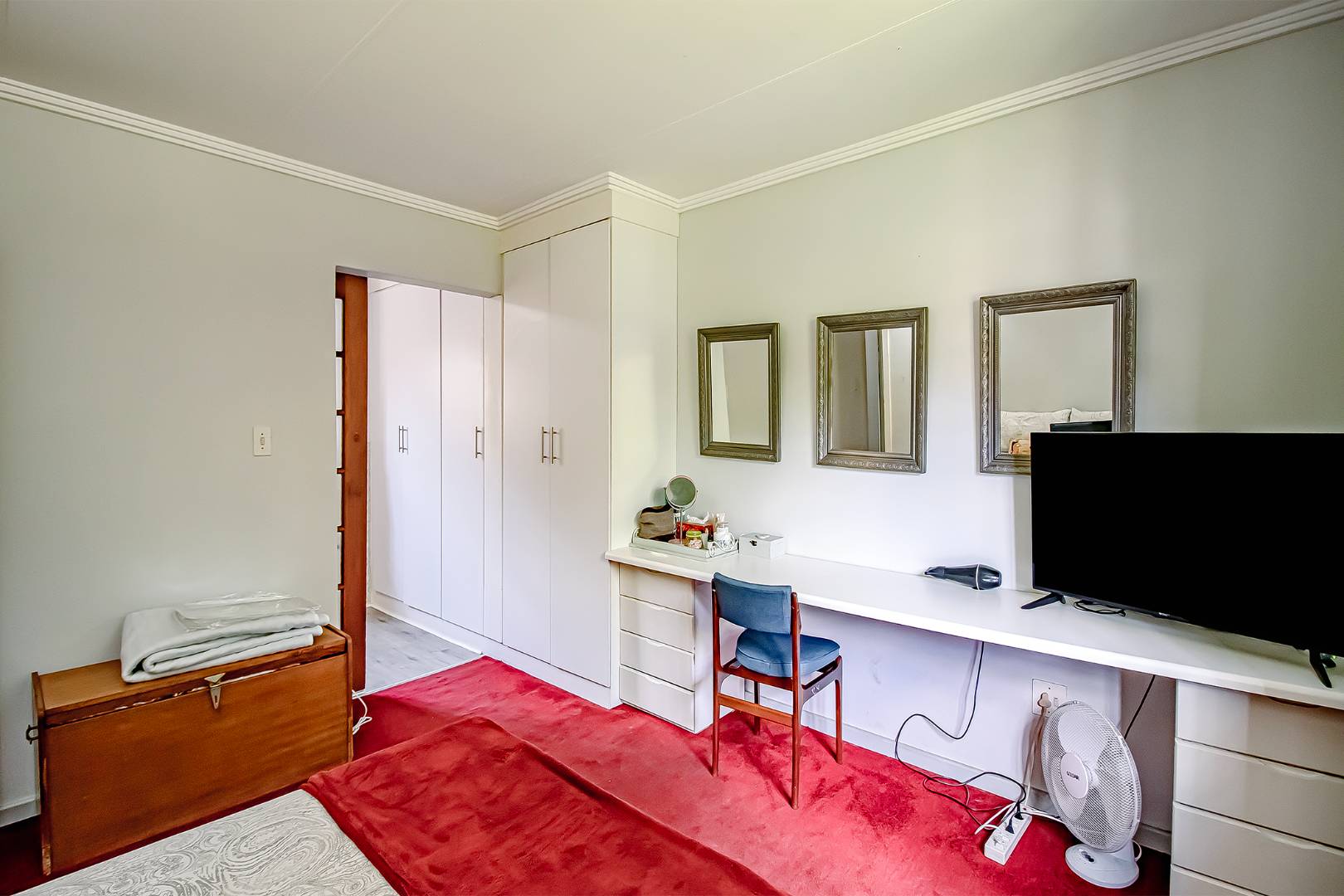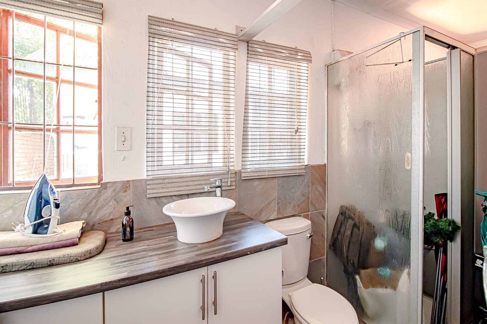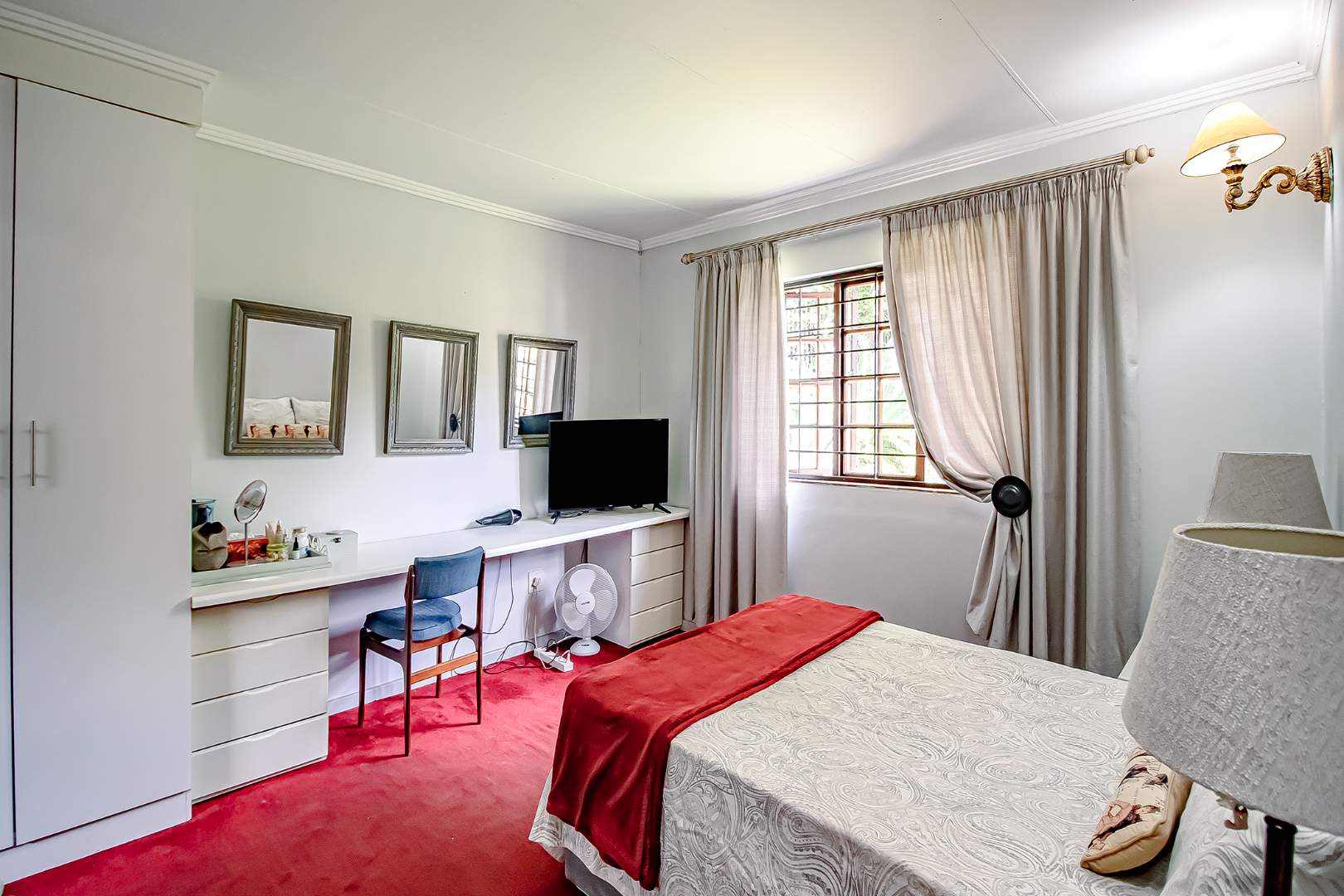The double garage was converted into a guest room/ cottage with its own en-suite shower, toilet and basin and BIC. Great for Air BNB.