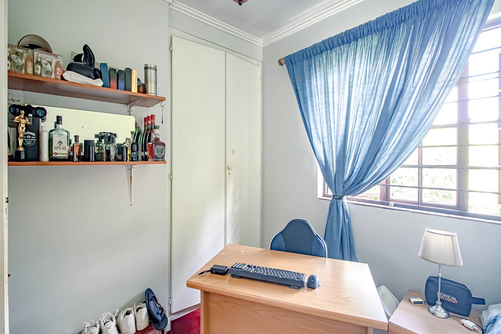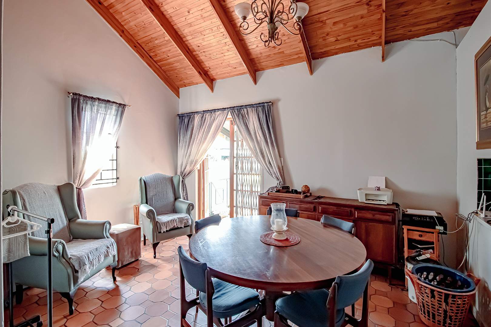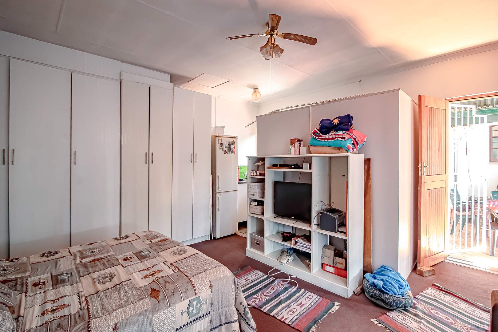 This flows to the dining room and lounge with double doors that lead out to the back garden with a built-in braai.