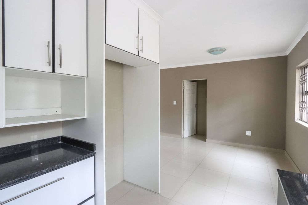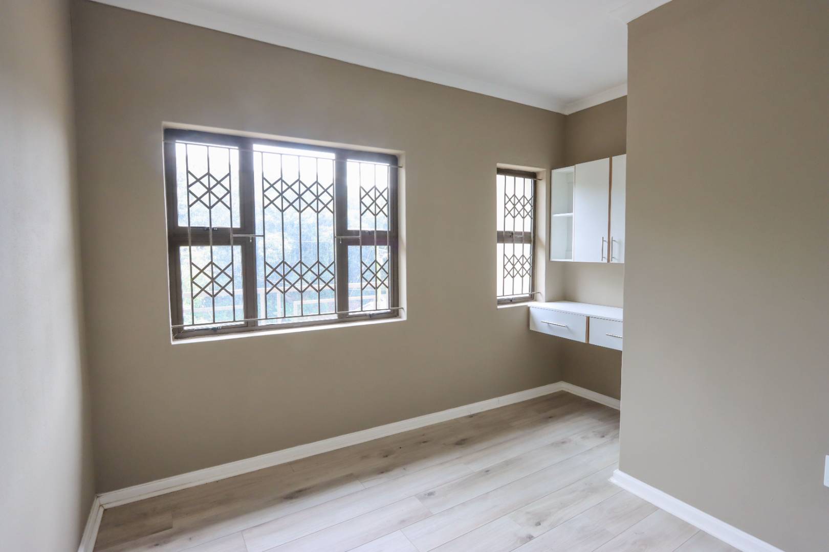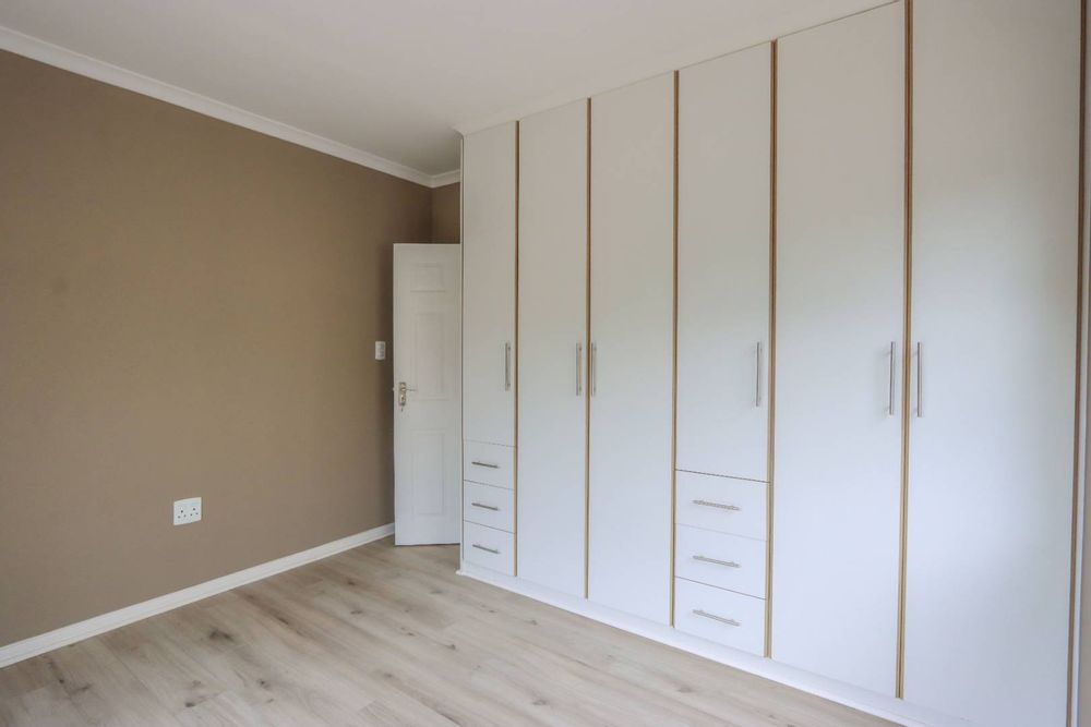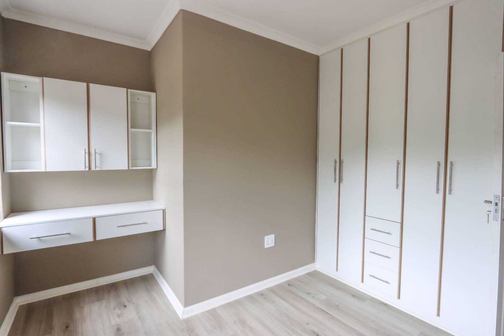 The main bedroom features built-in cupboards and a workstation, ideal for working from home.