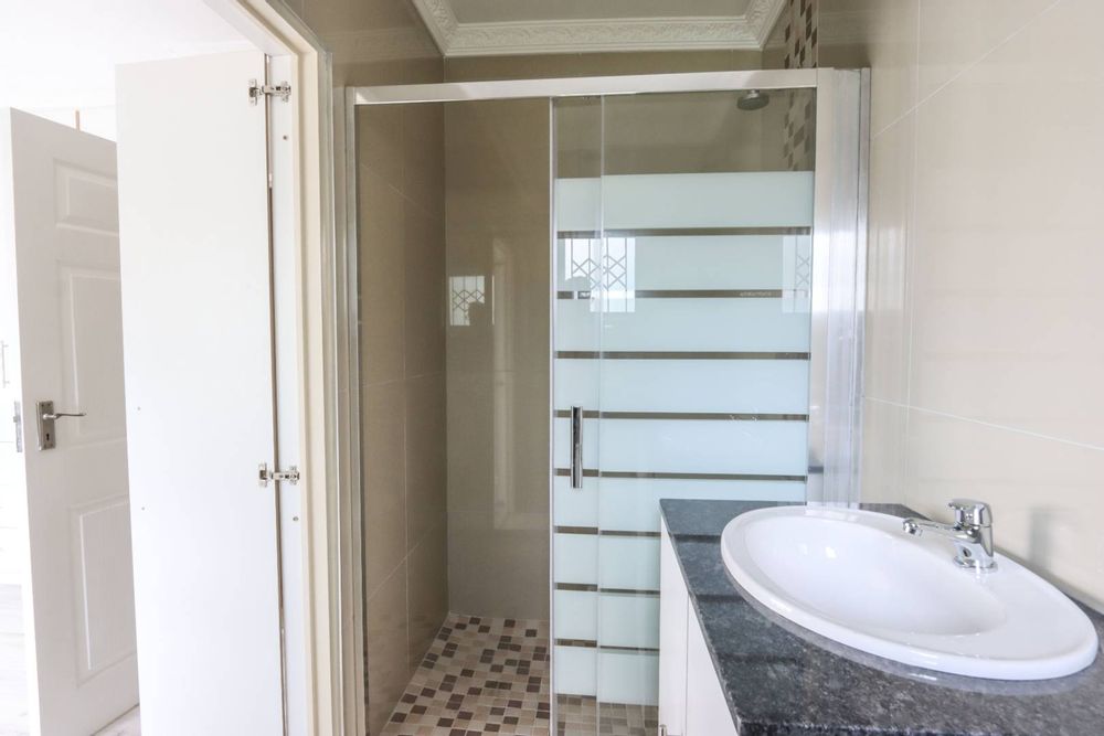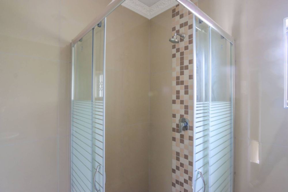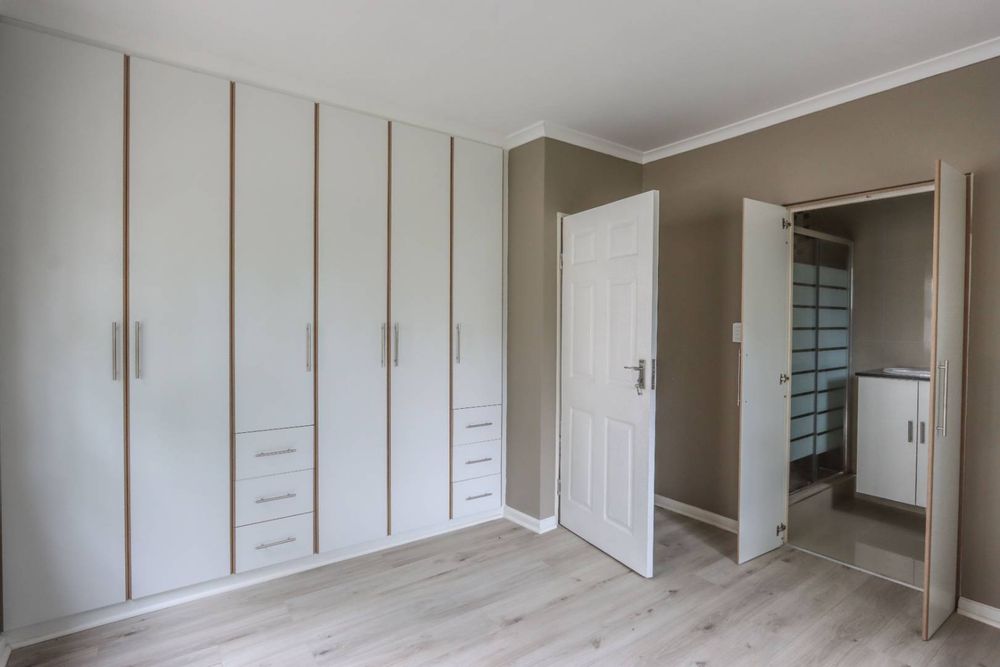 The second bedroom includes built-in cupboards and a modern en suite bathroom with a shower and toilet.