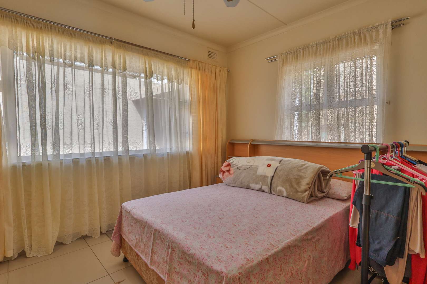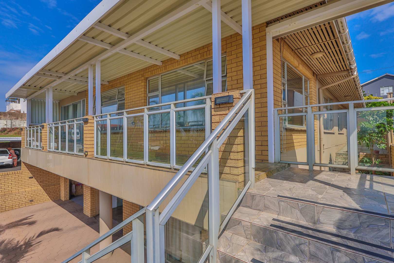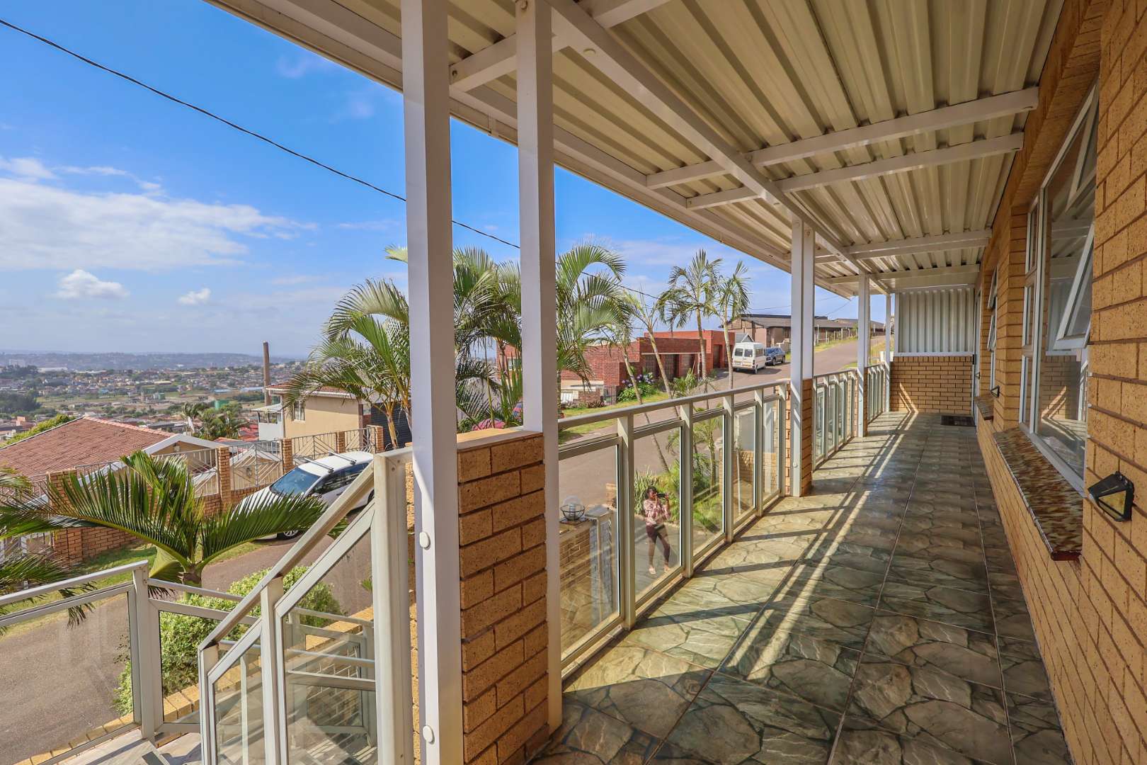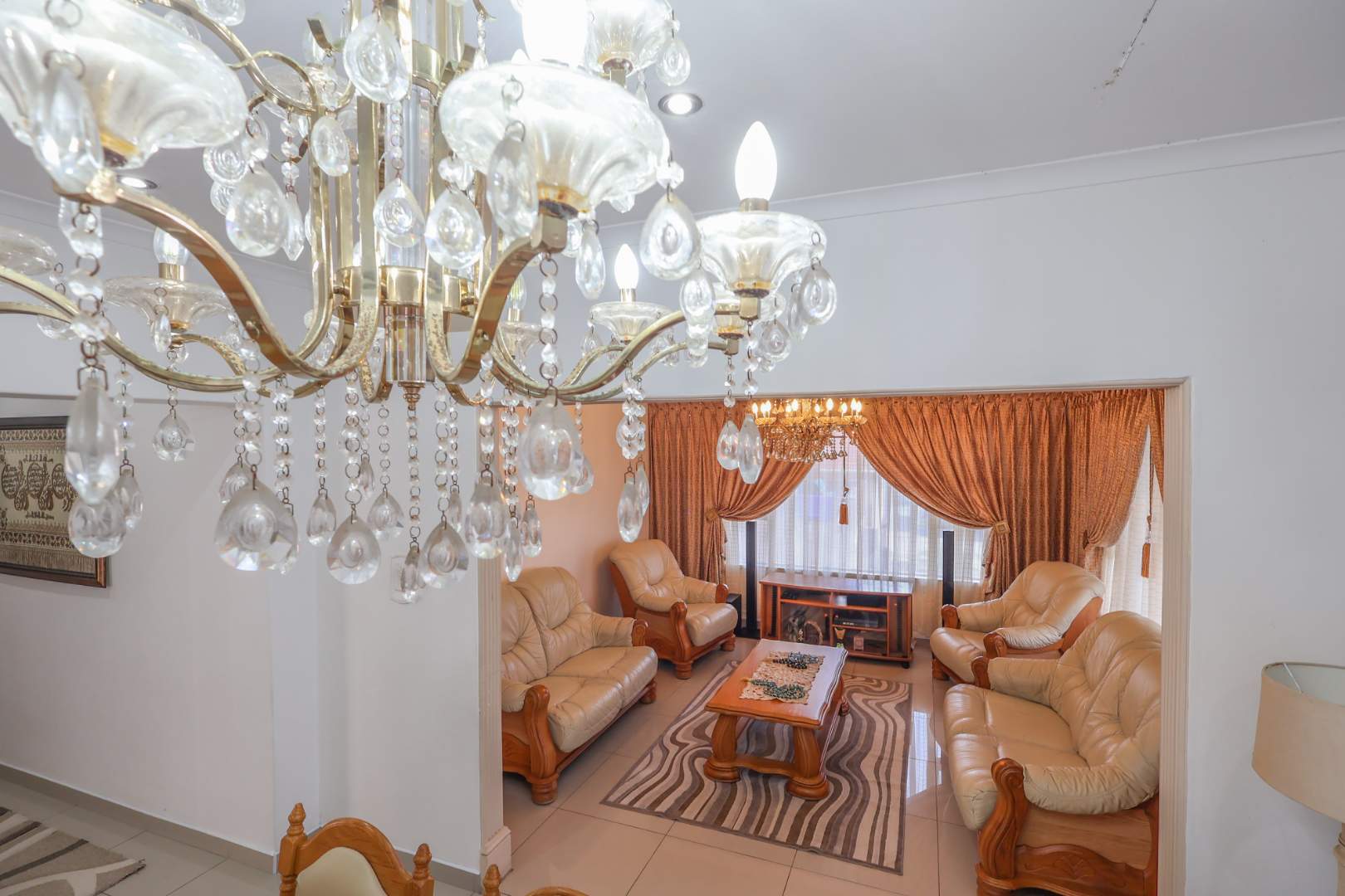 Securely set behind a motorised gate with a double garage, the home offers 4 bedrooms, 2 bathrooms and porcelain tiles throughout. Open-plan lounge and dining areas flow effortlessly into a large kitchen with a cosy eating space — practical, warm, and well thought out.