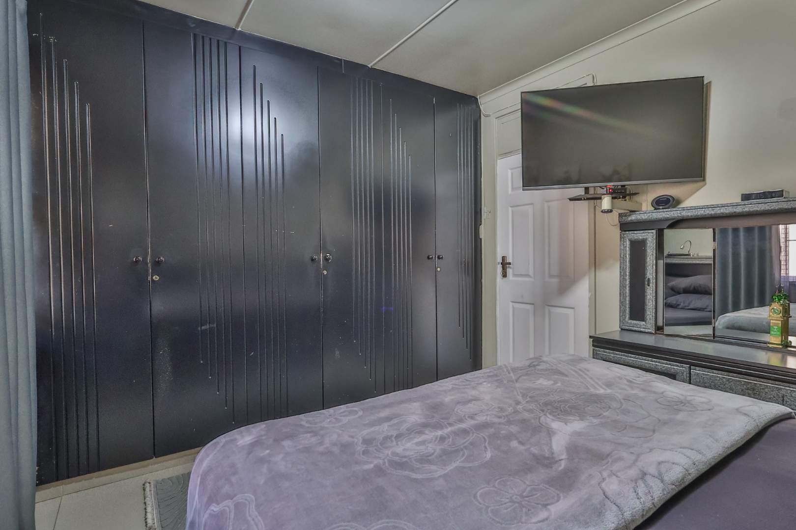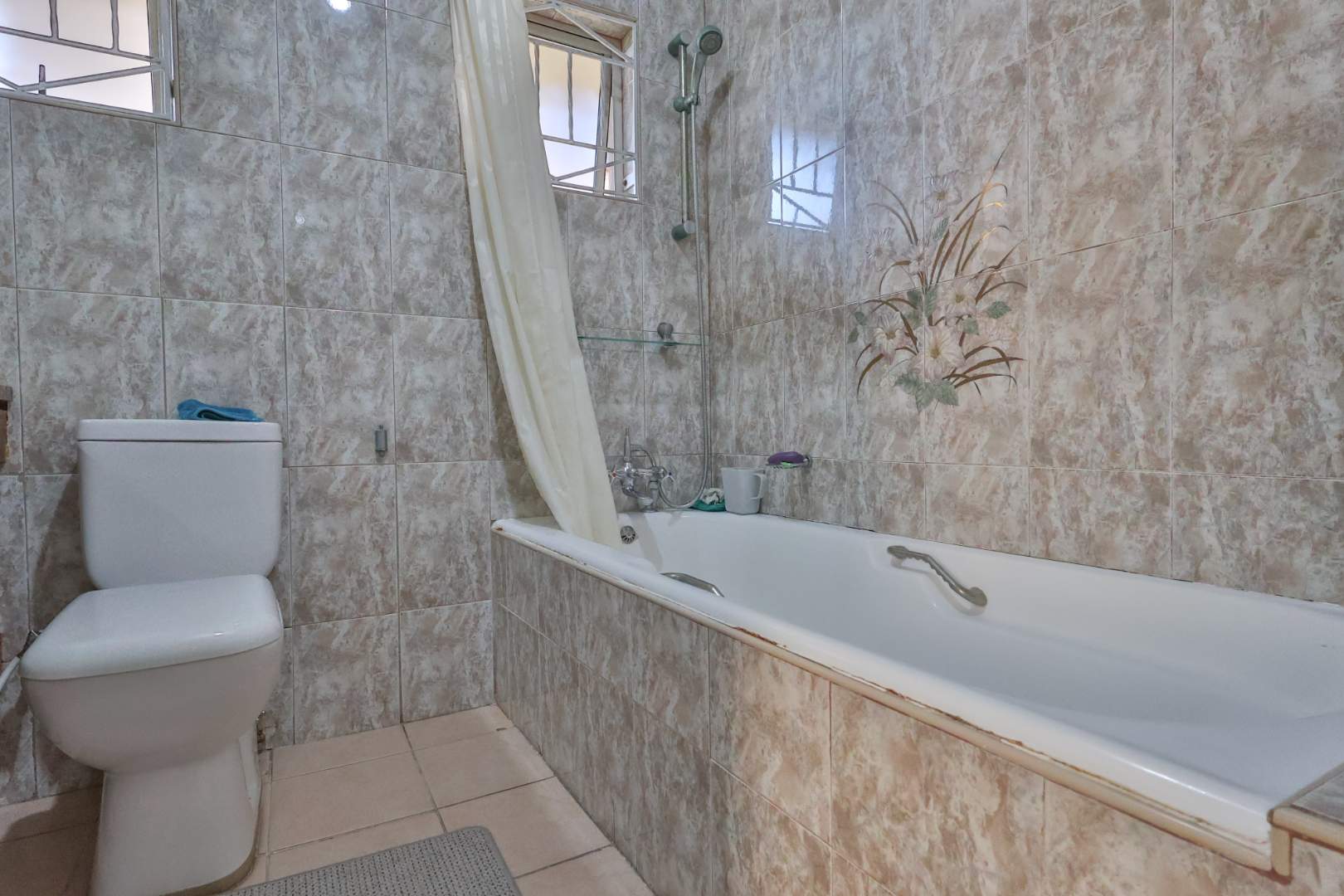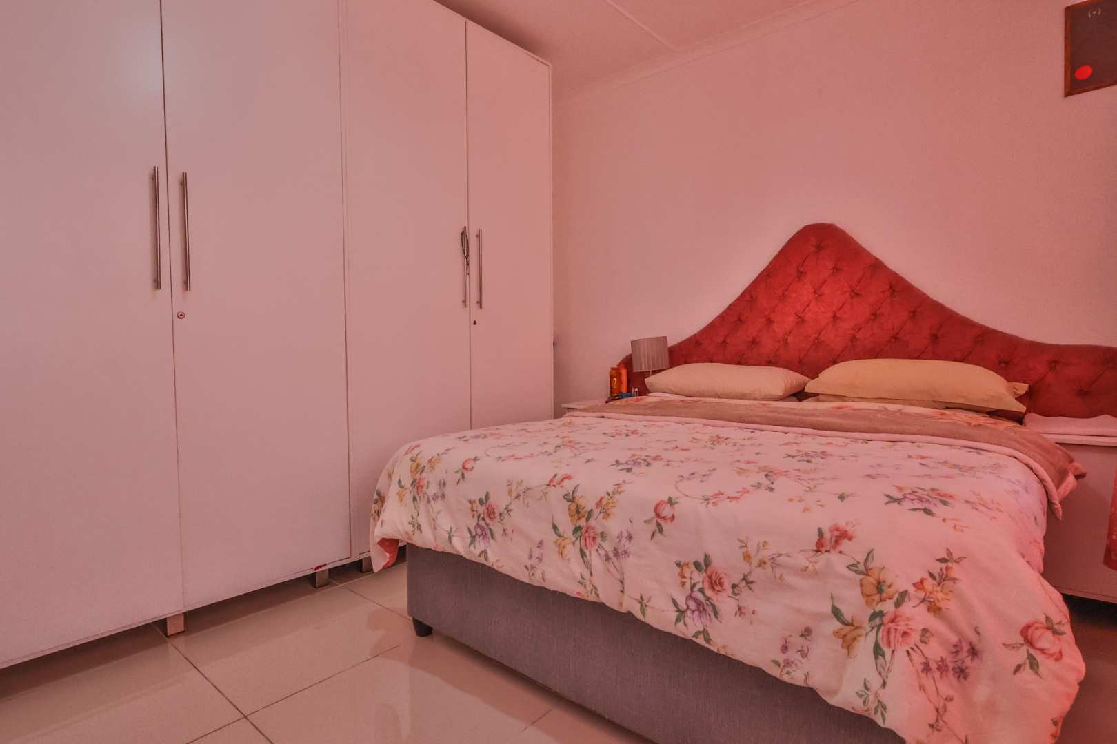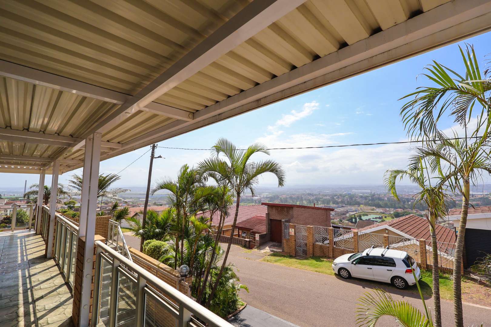 Securely set behind a motorised gate with a double garage, the home offers 4 bedrooms, 2 bathrooms and porcelain tiles throughout. Open-plan lounge and dining areas flow effortlessly into a large kitchen with a cosy eating space — practical, warm, and well thought out.