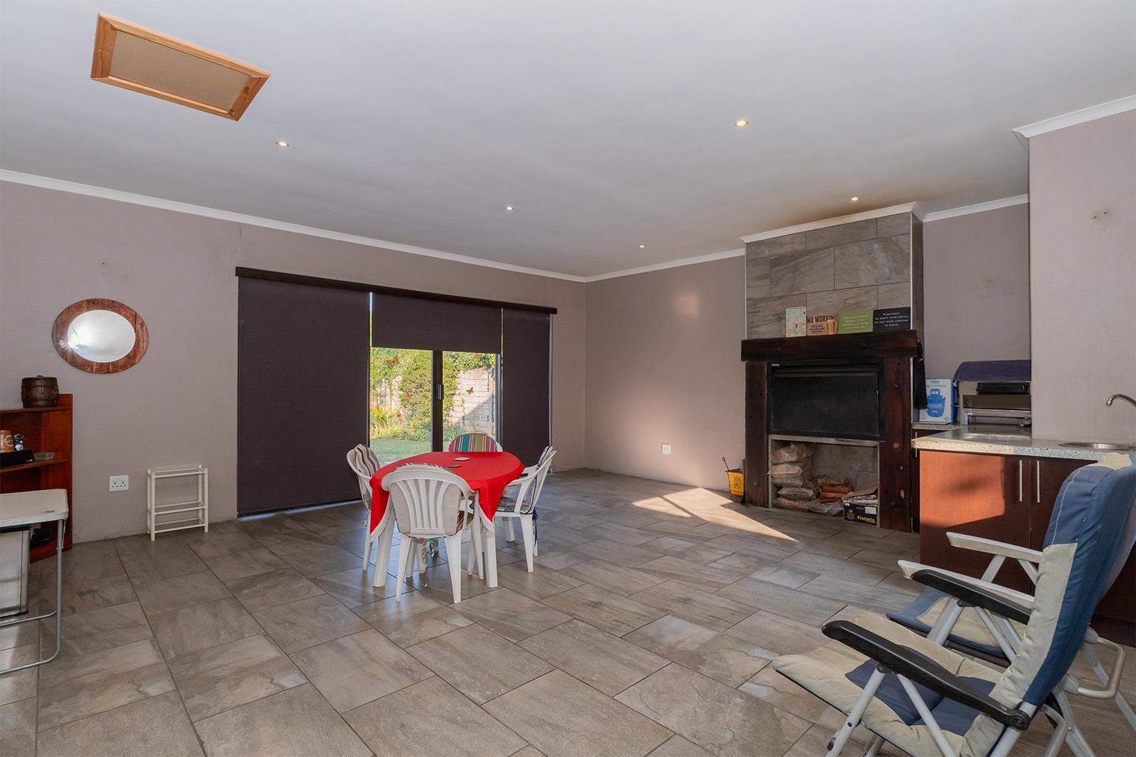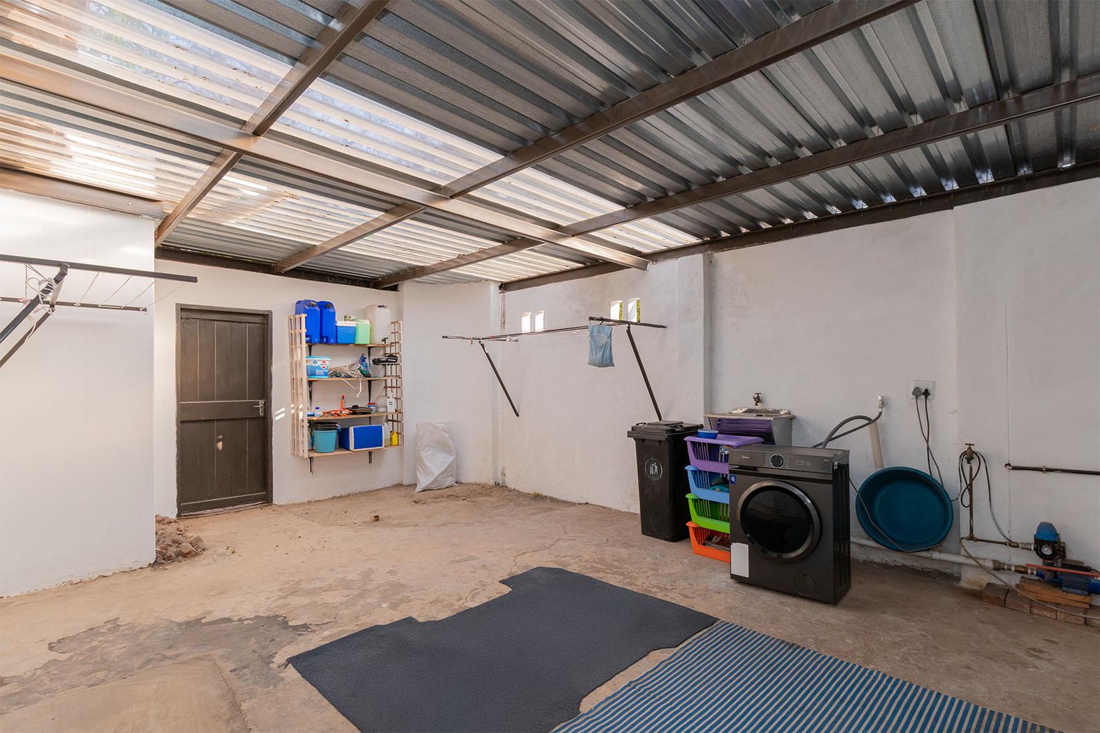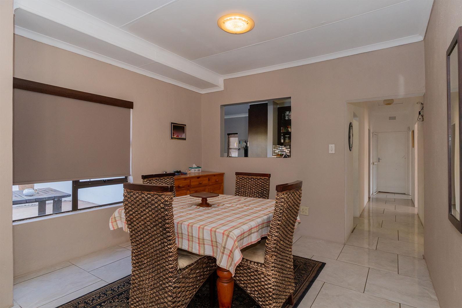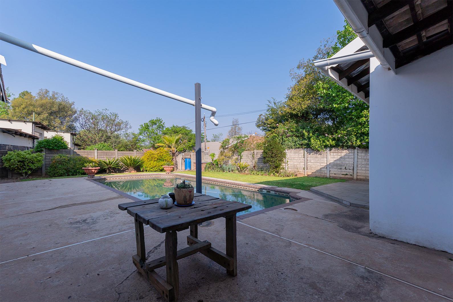 Tiled entrance hall, combined spacious tiled lounge and dining room with french doors leading to separate office area - 24sqm, exquisite kitchen with ample cupboards, gas hob, eye level oven, concrete tops, combined scullery, sliders to garden and pool, outside laundry area off kitchen with single trough, 4 good sized bedrooms with built in cupboards of which 2 is tiled and the other 2 is carpeted, spacious tiled main bedroom with walk in dresser and en-suite bathroom with bath, toilet, basin and vanity, second renovated bathroom in passage with bath, toilet, shower, basin and vanity, linen cupboard in passage, large tiled entertainment room off kitchen with built in braai, work station, guest toilet and sliders to patio overlooking the pool, double garage with direct entry into study/office area, large 24sqm storeroom/workshop off garage with door to garden, double IBR carport that can accommodate a caravan/high vehicle.