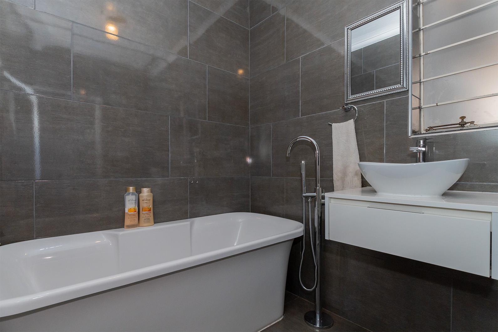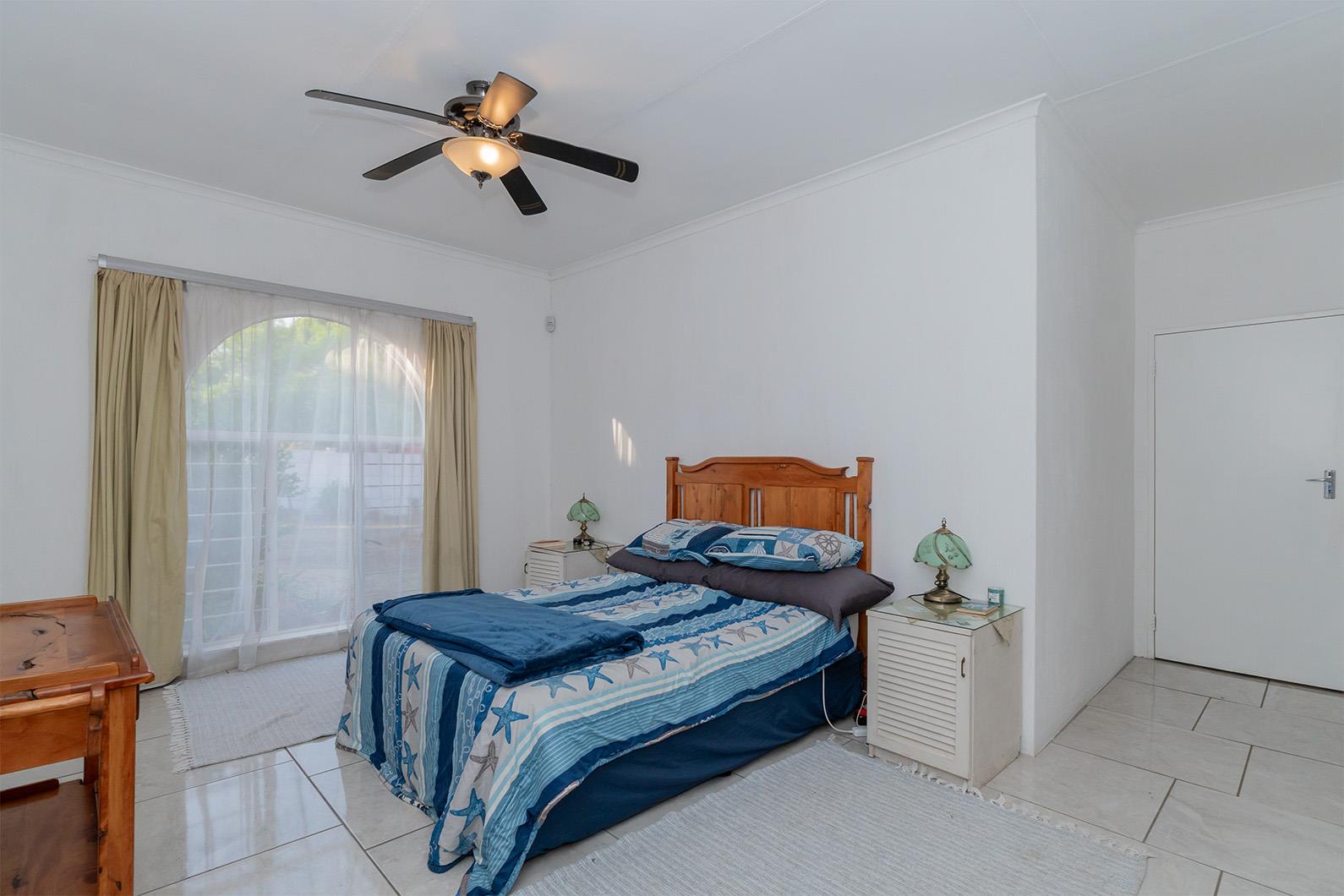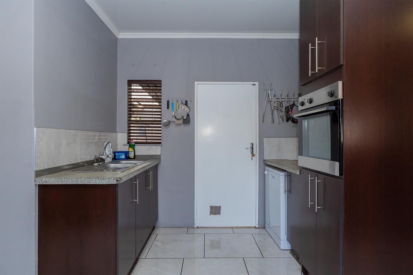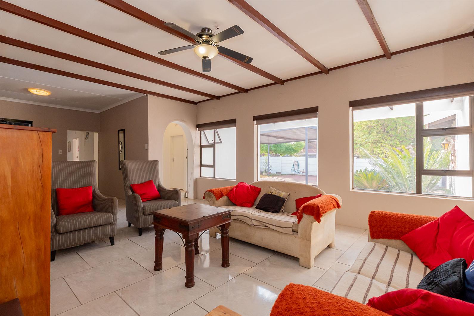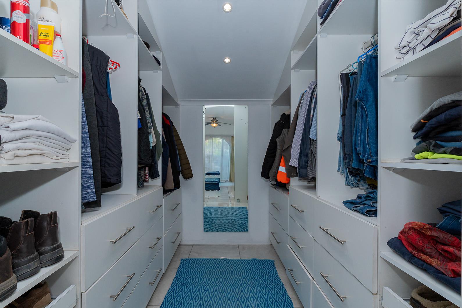 Tiled entrance hall, combined spacious tiled lounge and dining room with french doors leading to separate office area - 24sqm, exquisite kitchen with ample cupboards, gas hob, eye level oven, concrete tops, combined scullery, sliders to garden and pool, outside laundry area off kitchen with single trough, 4 good sized bedrooms with built in cupboards of which 2 is tiled and the other 2 is carpeted, spacious tiled main bedroom with walk in dresser and en-suite bathroom with bath, toilet, basin and vanity, second renovated bathroom in passage with bath, toilet, shower, basin and vanity, linen cupboard in passage, large tiled entertainment room off kitchen with built in braai, work station, guest toilet and sliders to patio overlooking the pool, double garage with direct entry into study/office area, large 24sqm storeroom/workshop off garage with door to garden, double IBR carport that can accommodate a caravan/high vehicle.
