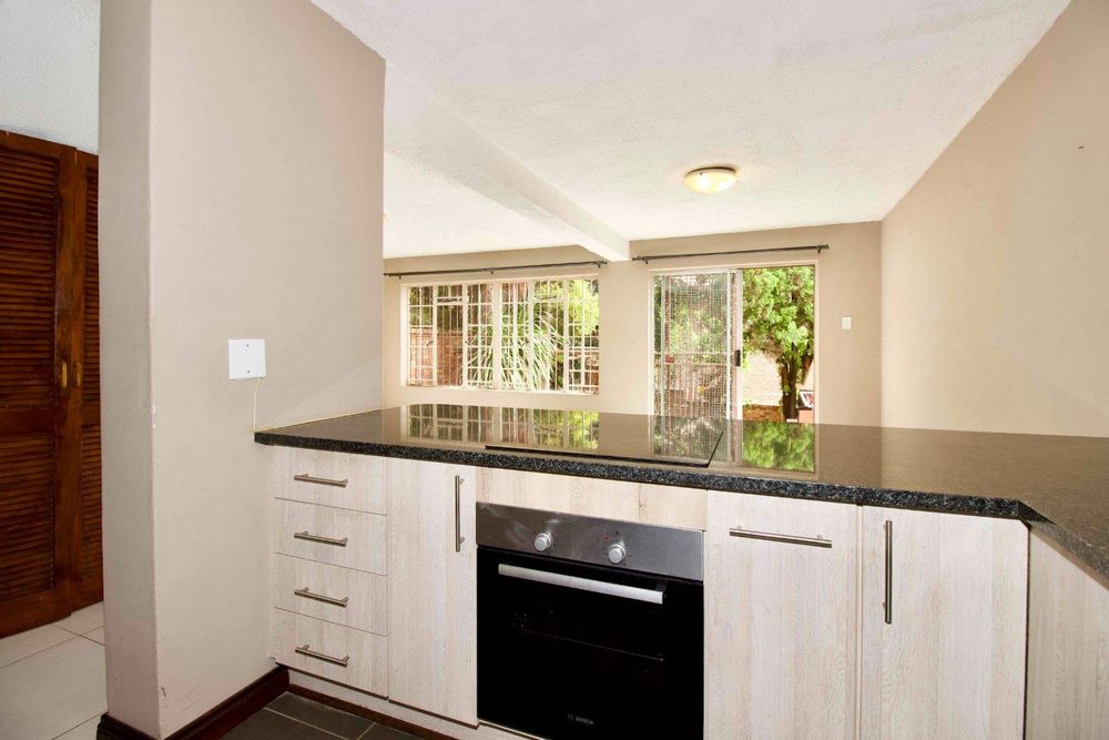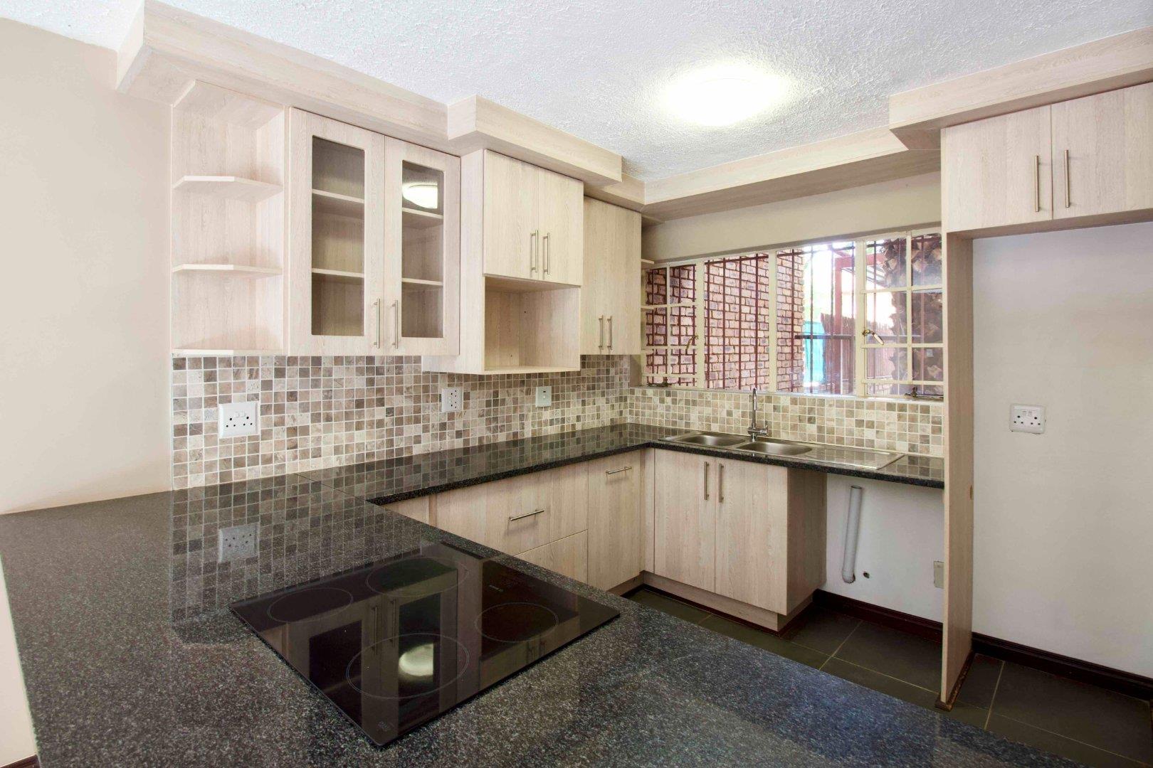 This impeccably maintained 3-bedroom duplex is ideally situated in close proximity to the Moreleta Nature Reserve. Recently renovated, the home boasts a modern kitchen featuring a spice drawer, double sink, under-counter oven and hob, microwave nook, as well as provisions for a washing machine and a single fridge.