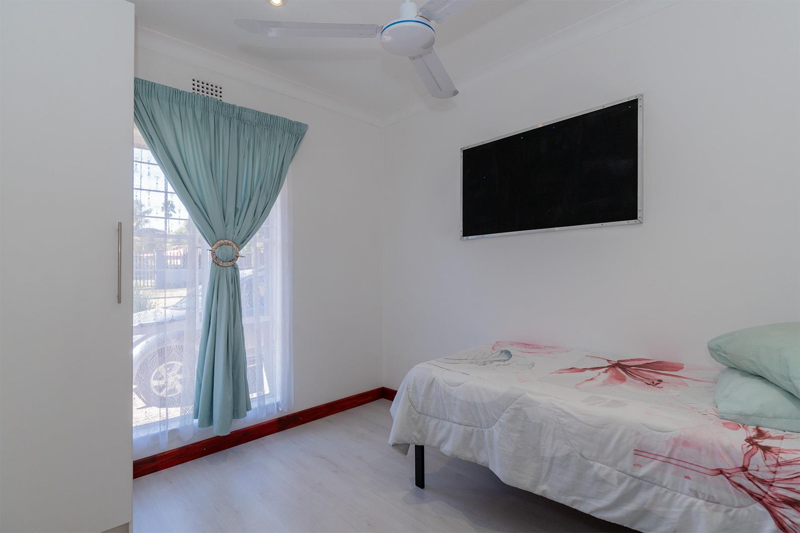 At the heart of the home, the modern kitchen boasts granite countertops, ample cupboard space, and a gas hob – perfect during loadshedding. A separate laundry room adds extra convenience.