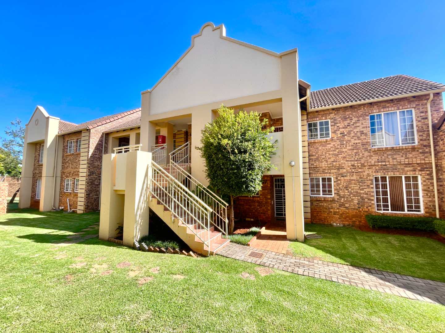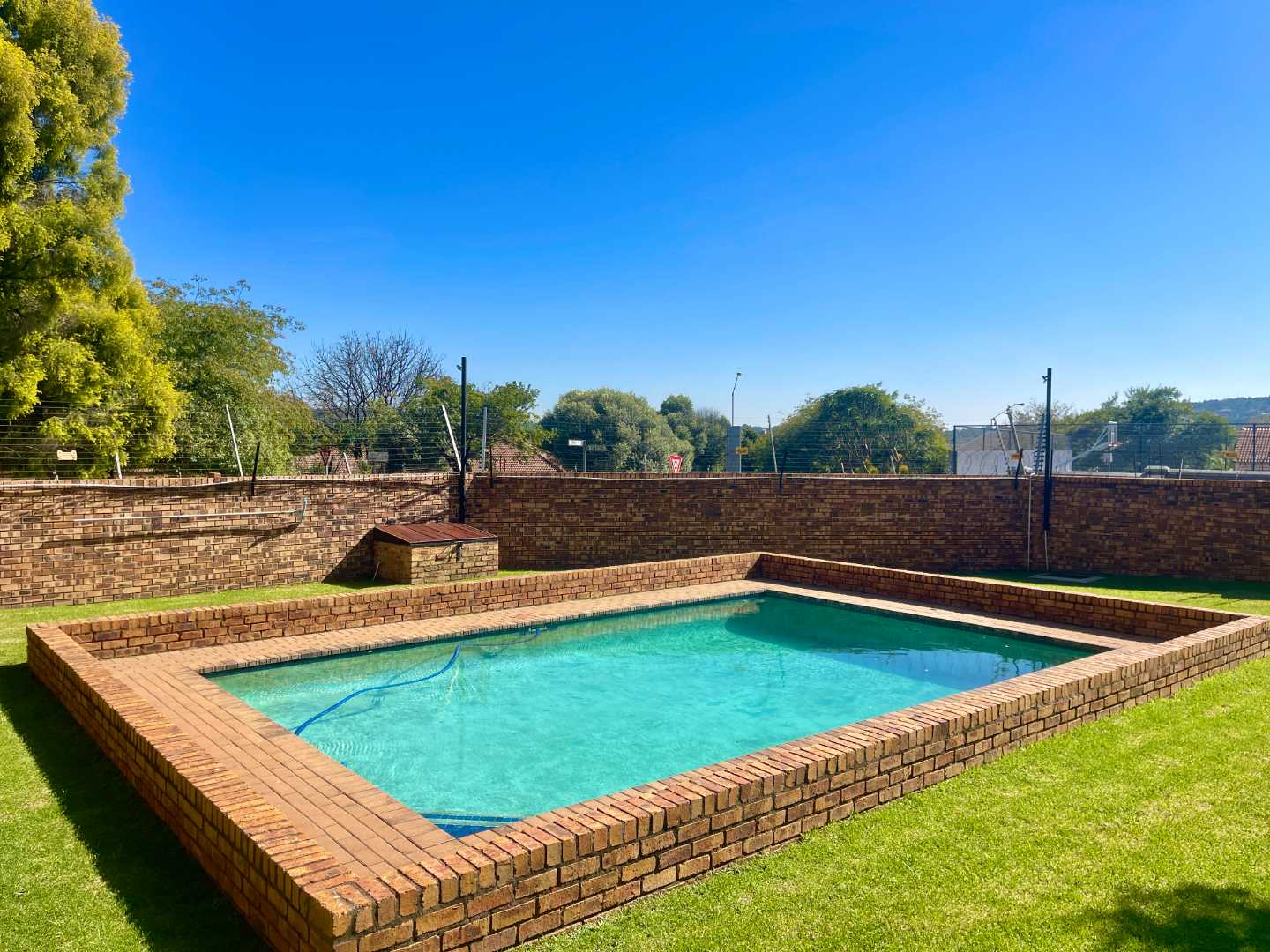 The complex is well kept and features a communal swimming pool.