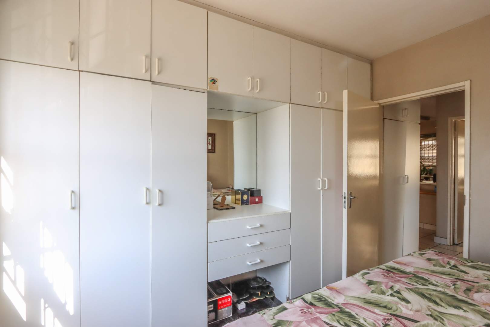 Two bedrooms, both fitted with built-in cupboards