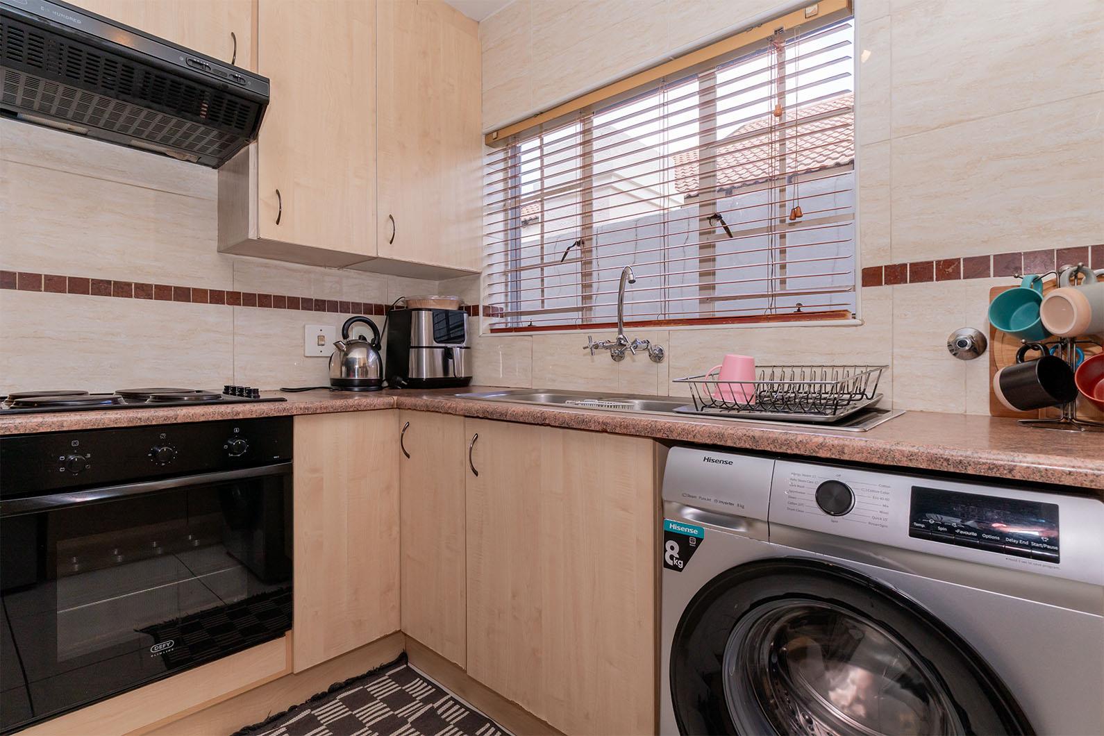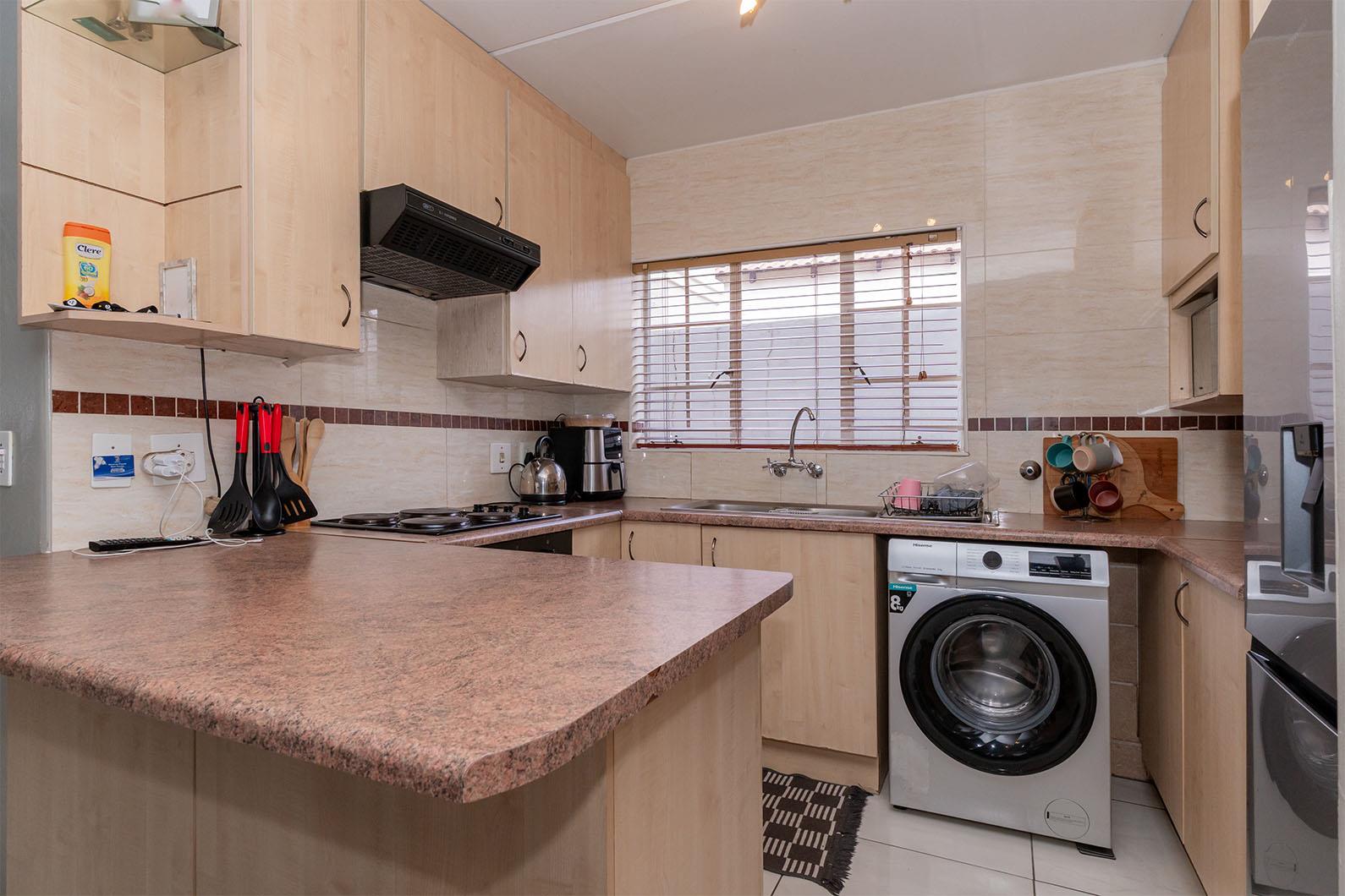 Step inside to a welcoming open-plan layout that seamlessly connects the kitchen and lounge. The fully tiled kitchen is well-appointed with ample cupboard space and a convenient breakfast nook, making it both practical and functional for everyday living.