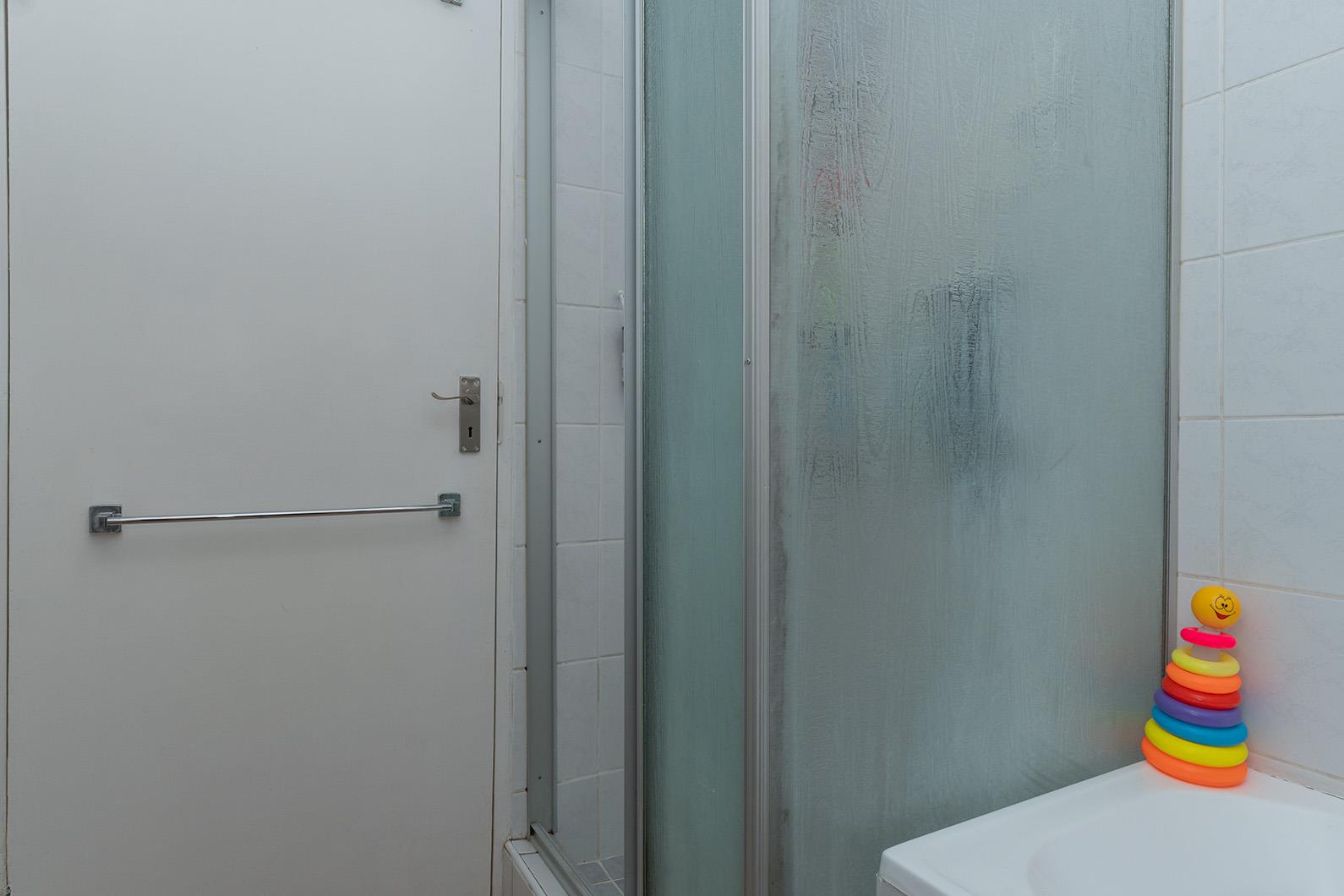 - Fully tiled bathroom with bath, shower, basin and toilet