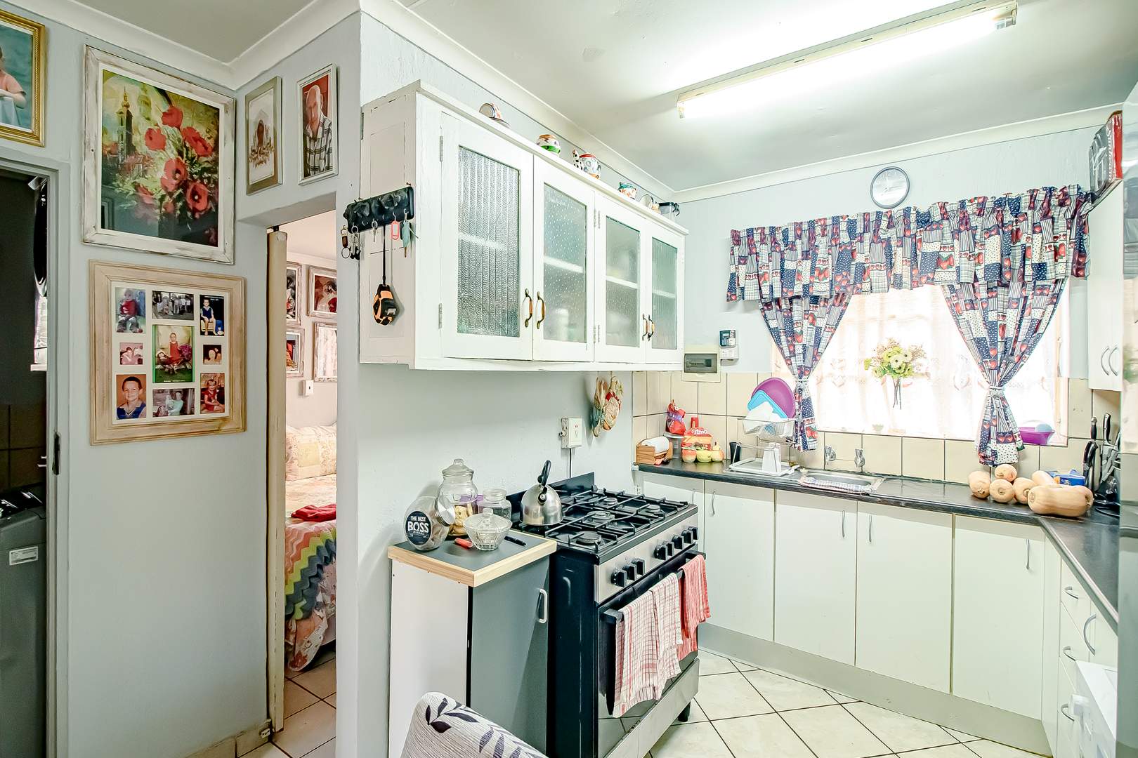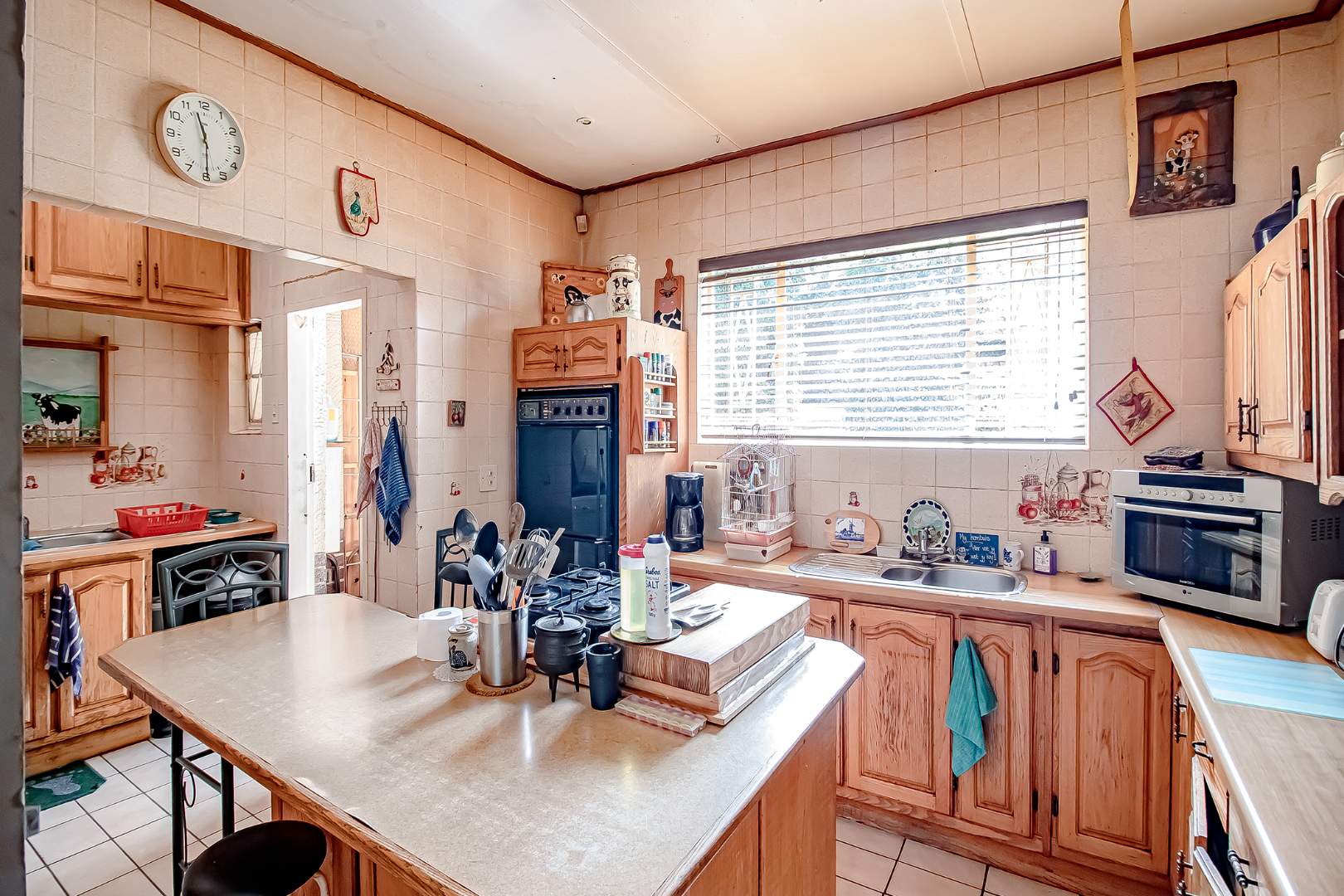 - A kitchen with plenty of cupboards and an island
