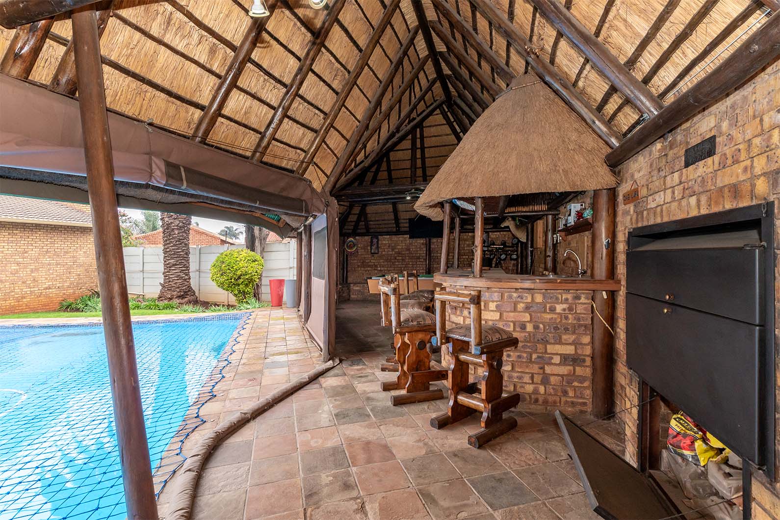 Extra's - blinds, 2 x aircons, alarm system, Harvey tiles on lapa, pool recently done poxy coating, pool net, solar heating for pool, fibre, guarded enclosure.