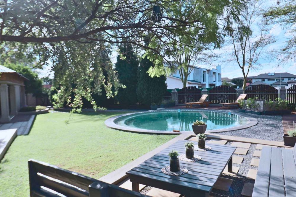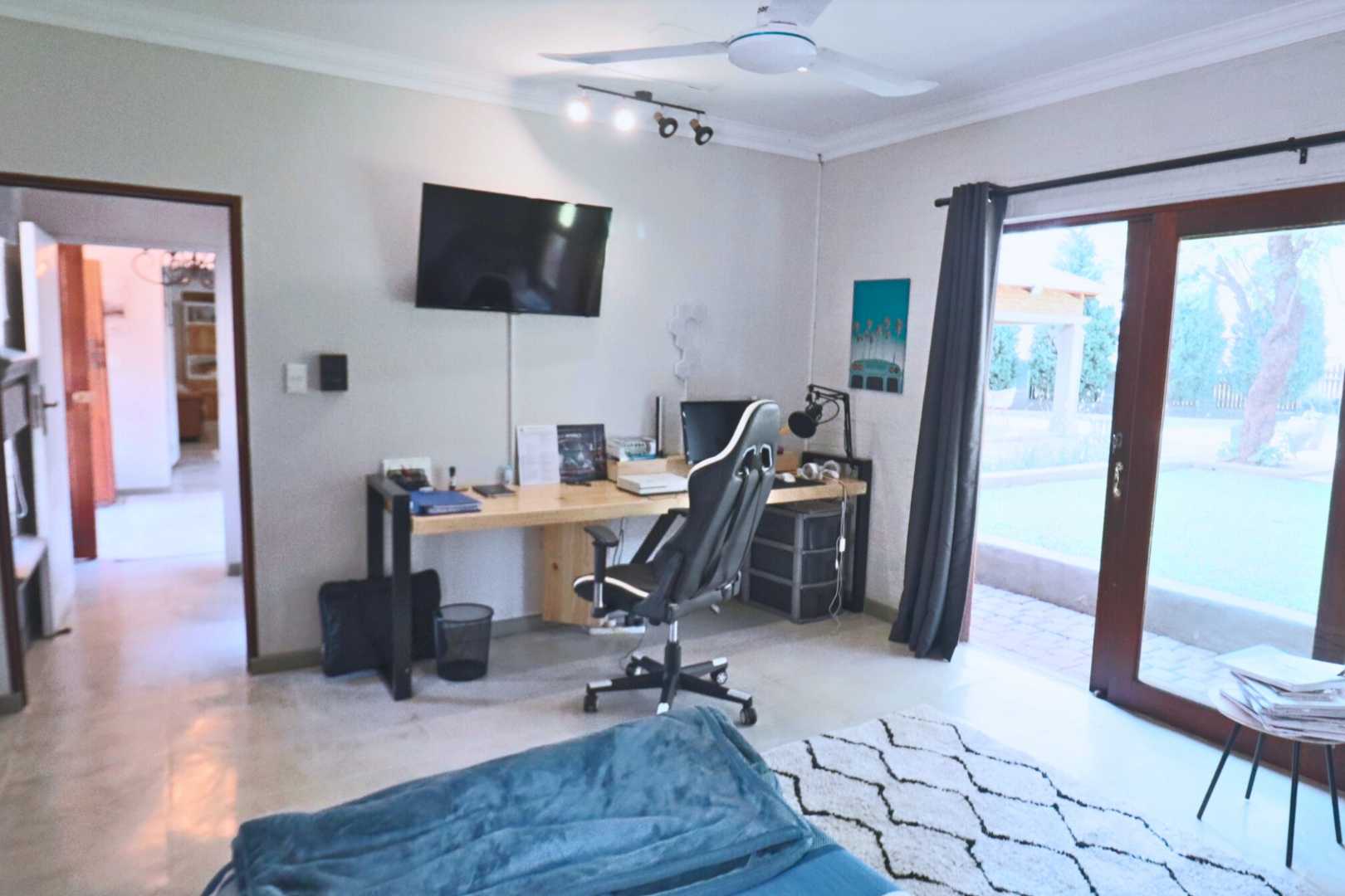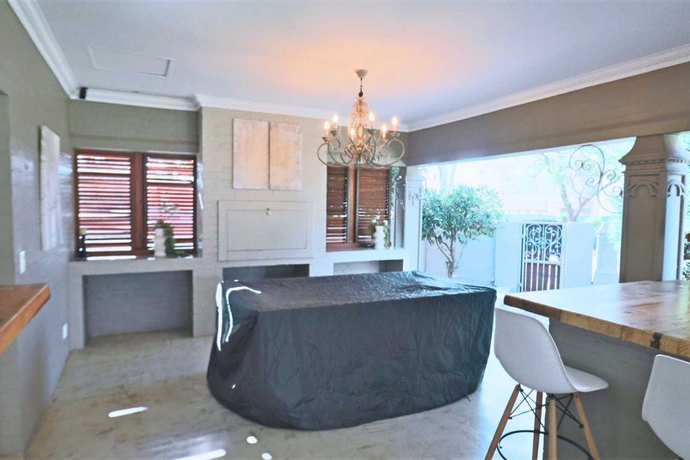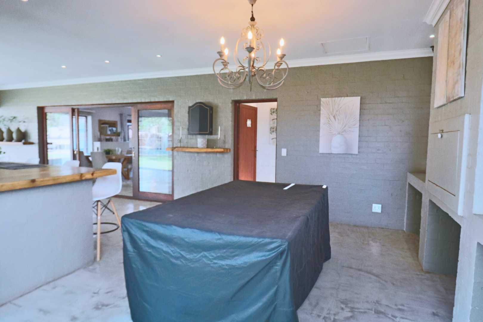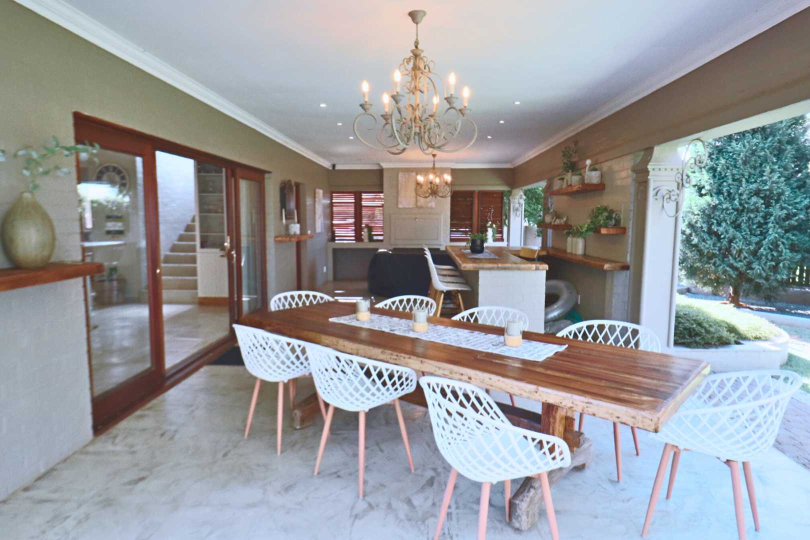 Step outside to a large patio, where you’ll find a fully equipped bar area and a convenient restroom. The patio offers breathtaking views of the pool, making it a perfect spot for relaxation. For those warm summer nights, enjoy an additional boma area and a gas braai by the pool, enhancing your outdoor hosting experience.